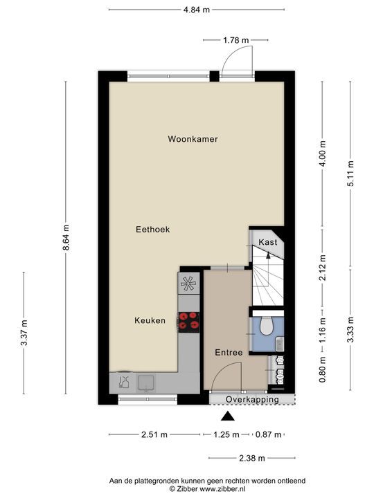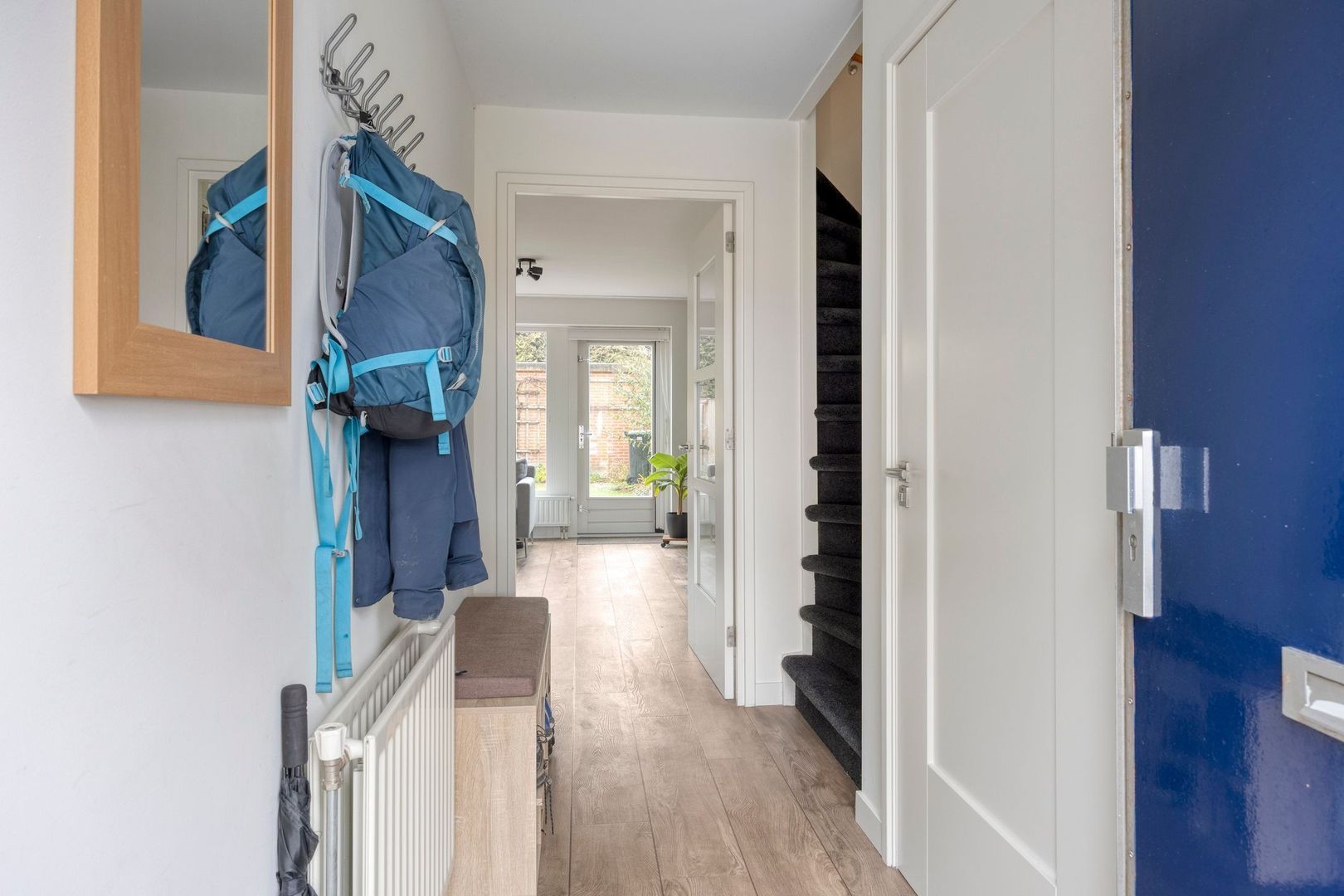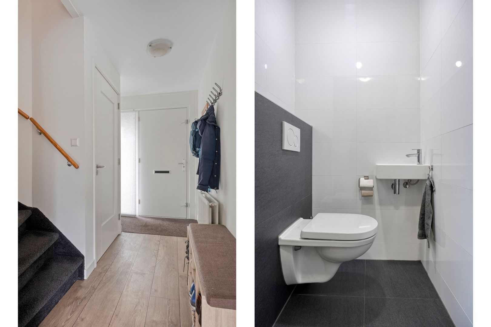 Entree met hal, meterkast, modern toilet, trapopgang naar de eerste verdieping en toegang tot de woonkamer.