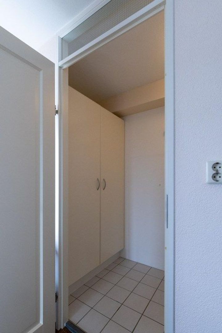 De entree van het appartement kan afgesloten worden met een elektrisch rolluik.