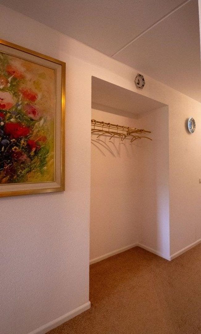 Hal met garderobe nis, bergkast, toilet en toegang tot de woonkamer, 2 slaapkamers en badkamer.