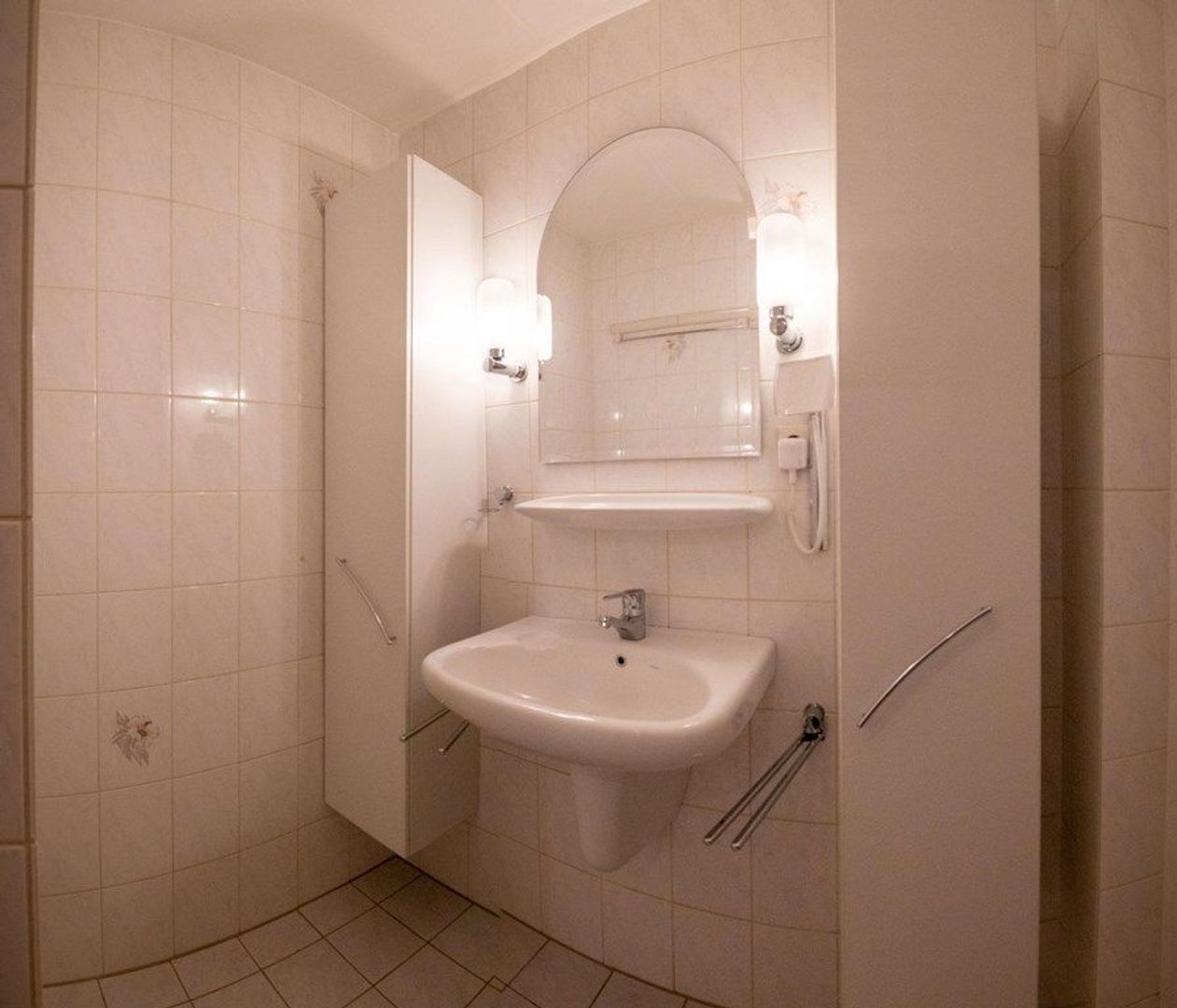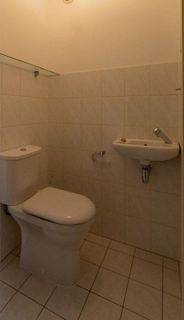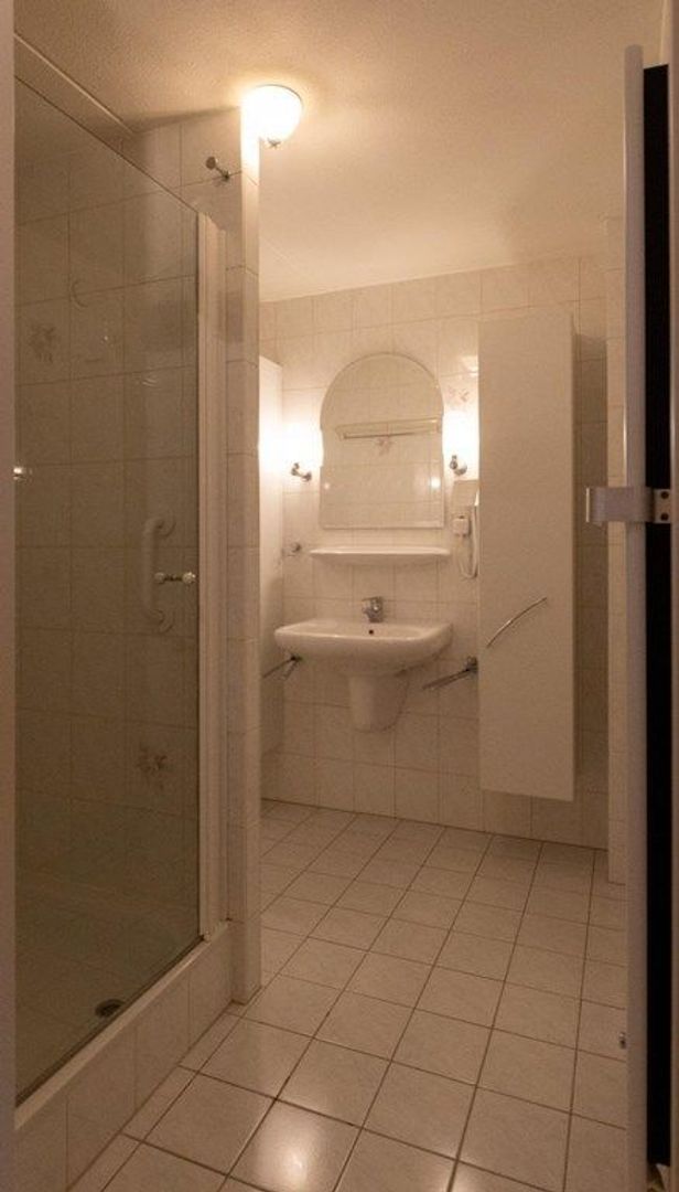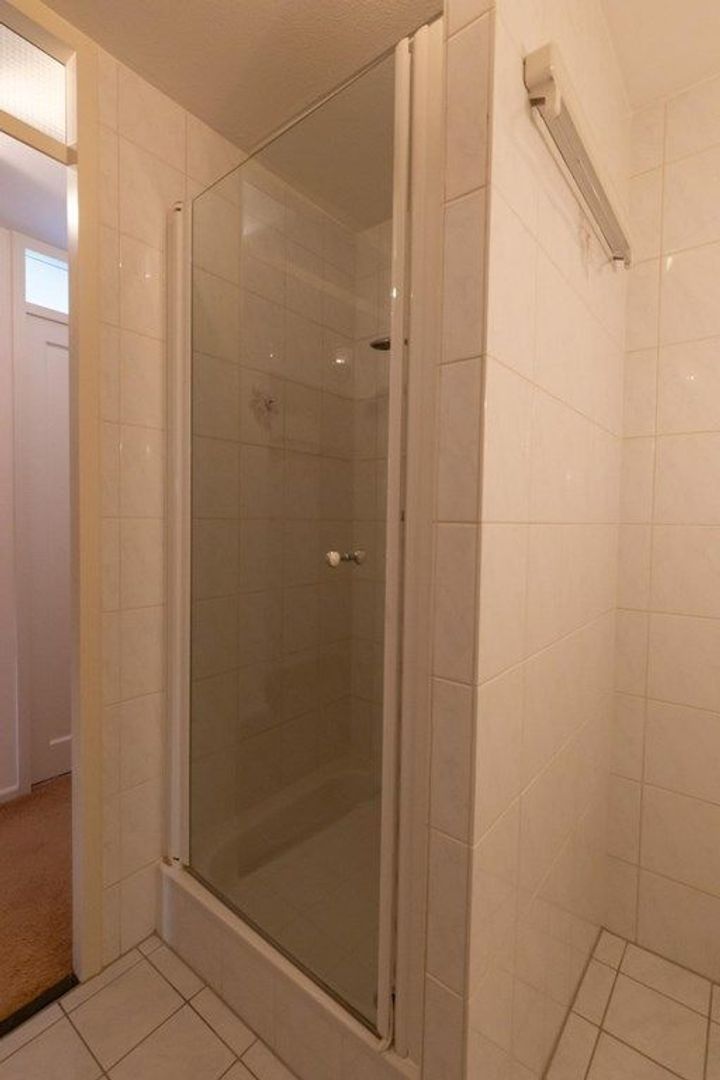 De badkamer is voorzien van een douchecabine, wastafel met spiegel en 2 handdoekenkasten.
