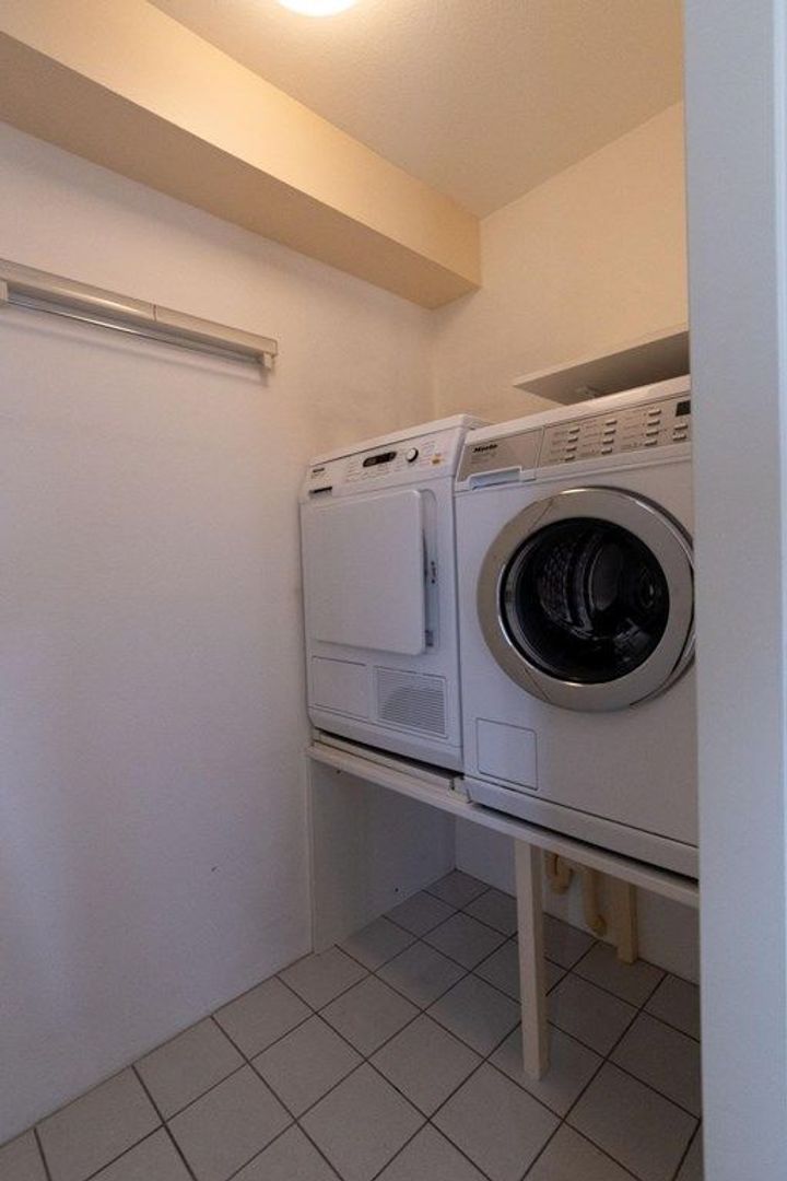Aangrenzend bevindt zich de bijkeuken/wasruimte met aansluiting voor de wasmachine en droger. De woonkamer is voorzien van een elektrisch bedienbaar zonnescherm.