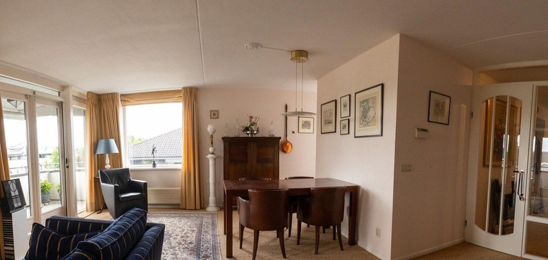 De heerlijk ruime woonkamer heeft veel licht inval en dubbele openslaande deuren naar het balkon.