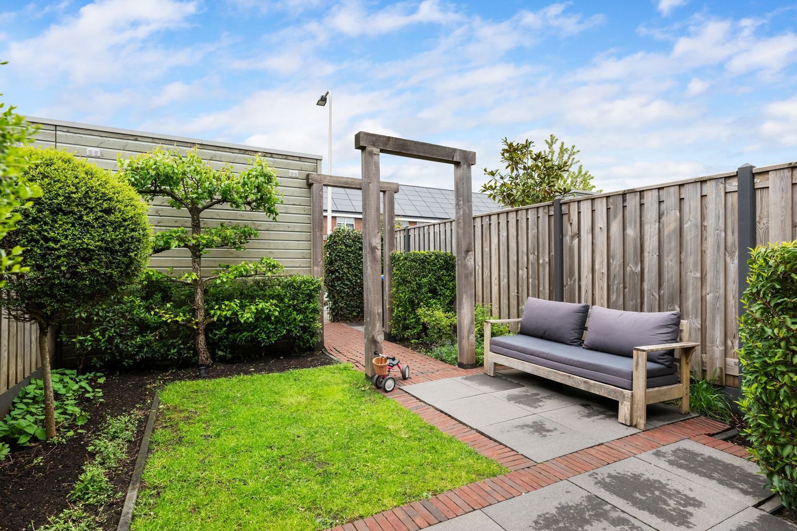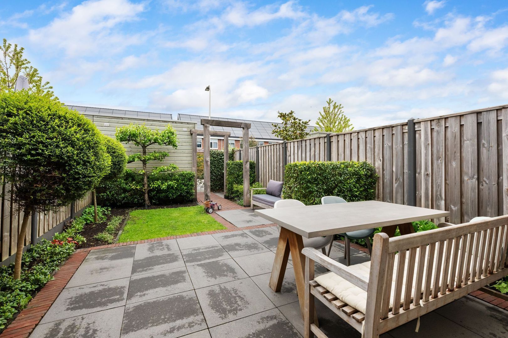 Vanuit de woonkamer met schuifpui bereik je de zonnige achtertuin (NW) met berging en achterom.