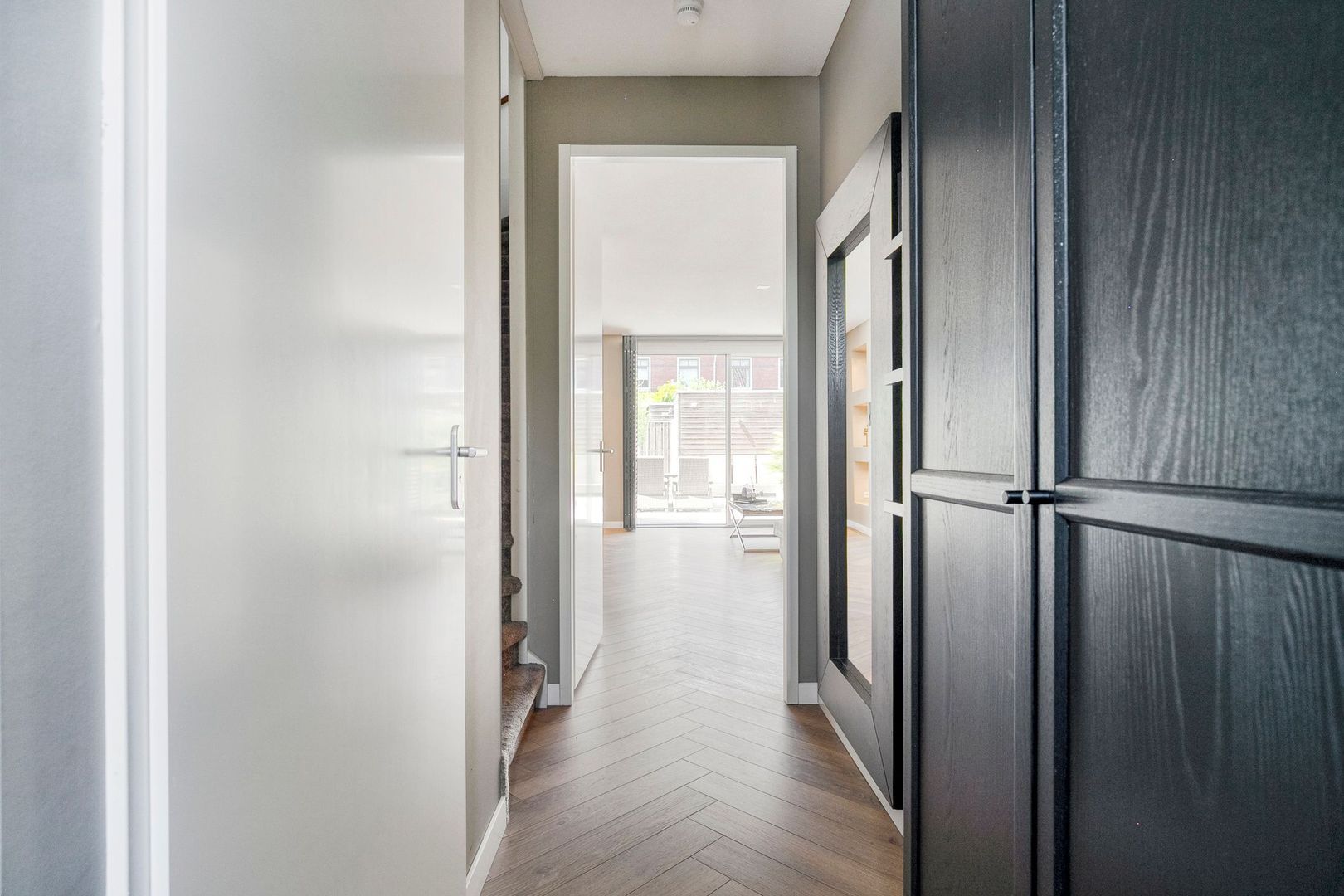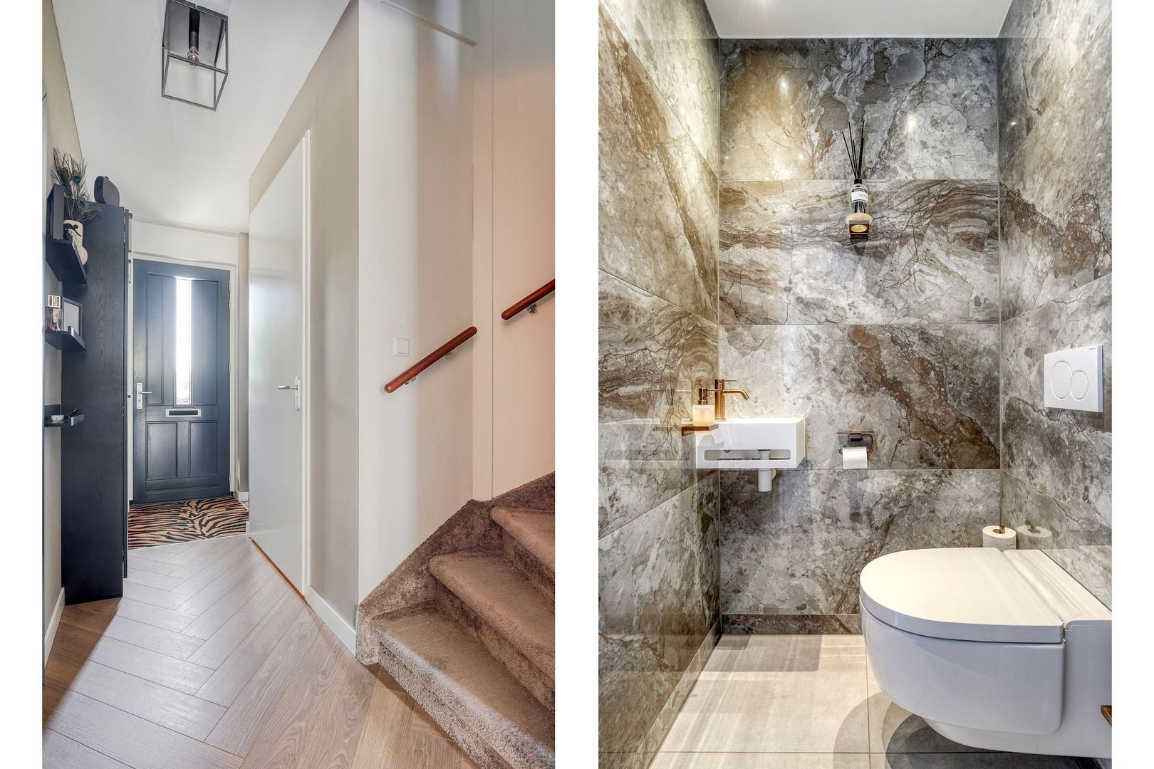 Entree, hal met meterkast, toilet, trapopgang naar de eerste verdieping en toegang tot de woonkamer.