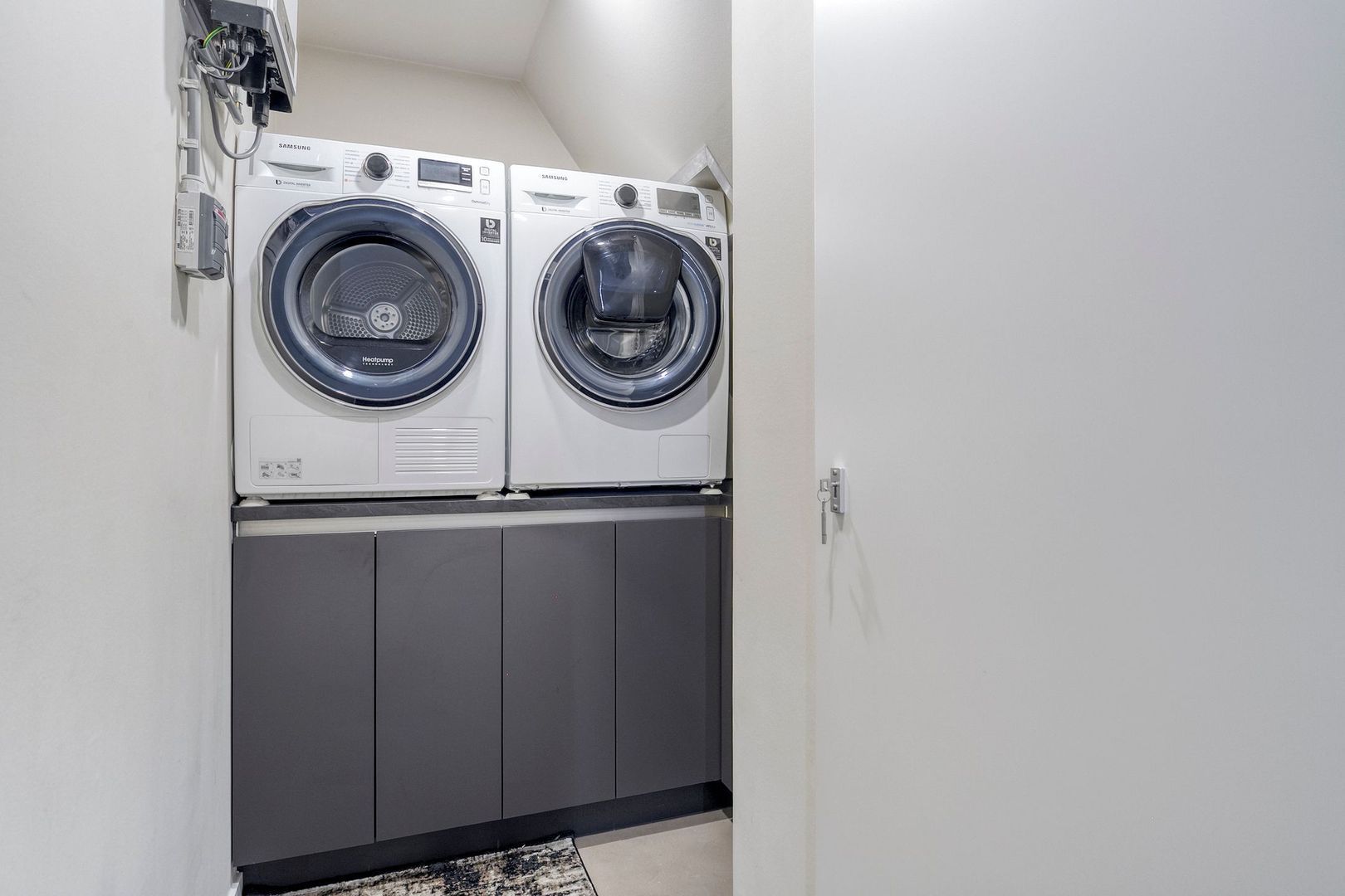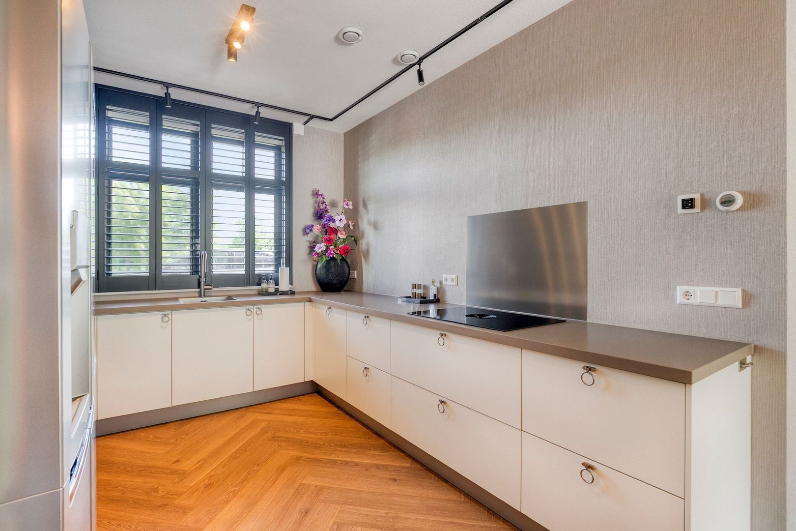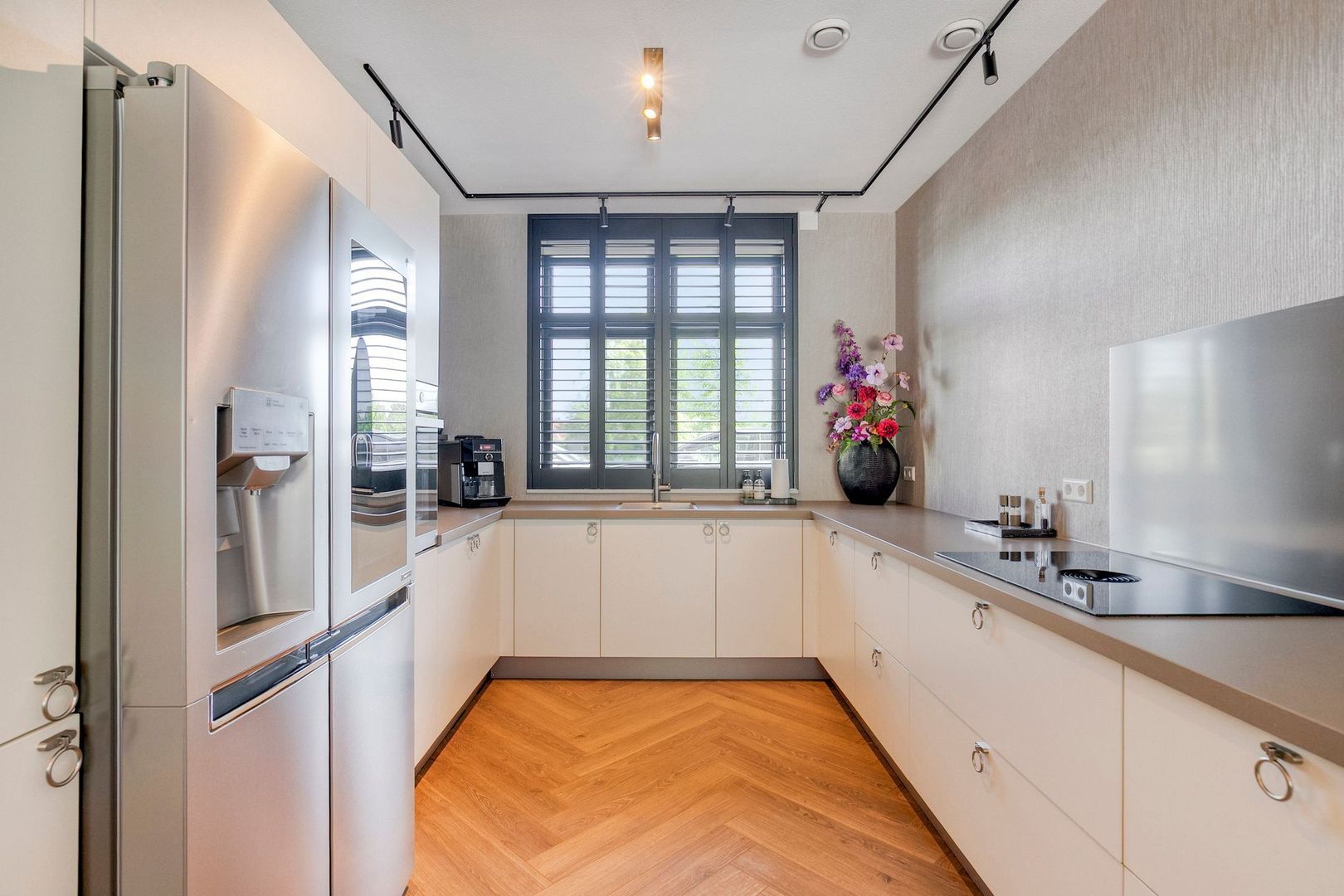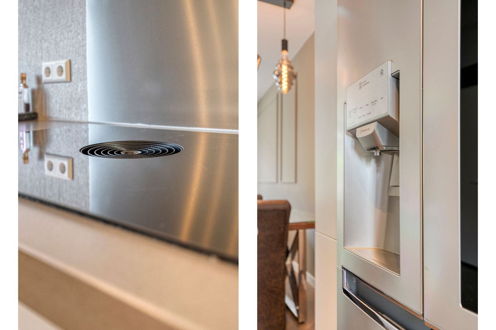 De open keuken is een ware eyecatcher voor kookliefhebbers. Uitgerust met high-end inbouwapparatuur, waaronder een Bora inductiekookplaat met geïntegreerde afzuiging, Quooker voor direct kokend maar ook koud en bruisend water, een vaatwasser en een oven. De slimme indeling biedt veel werkruimte en kastruimte.