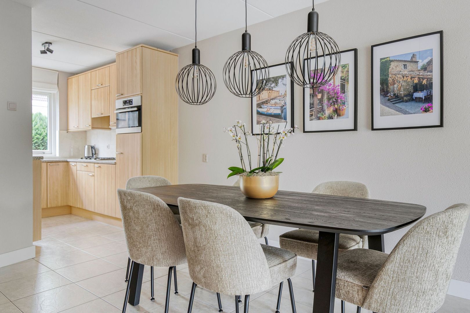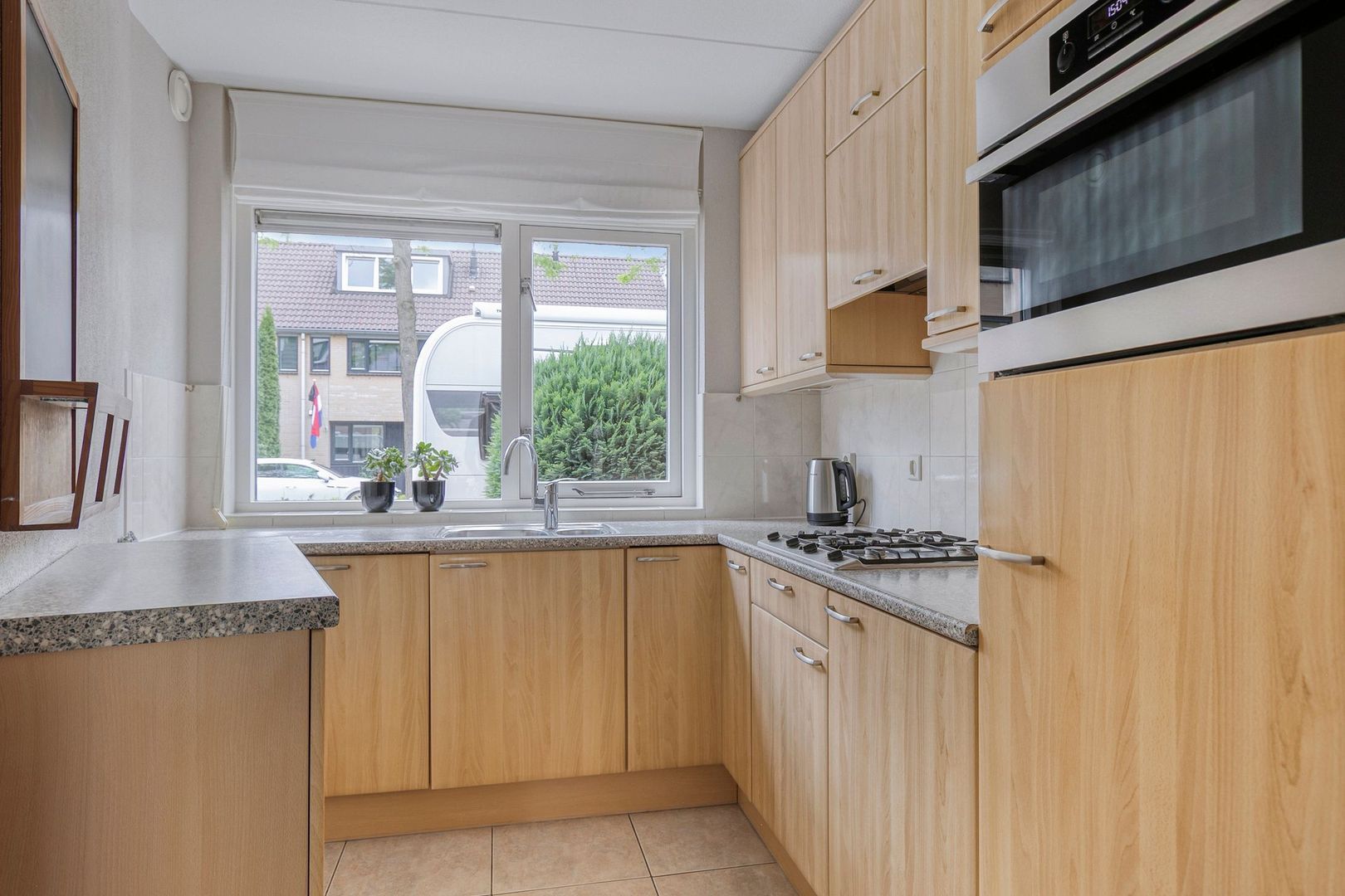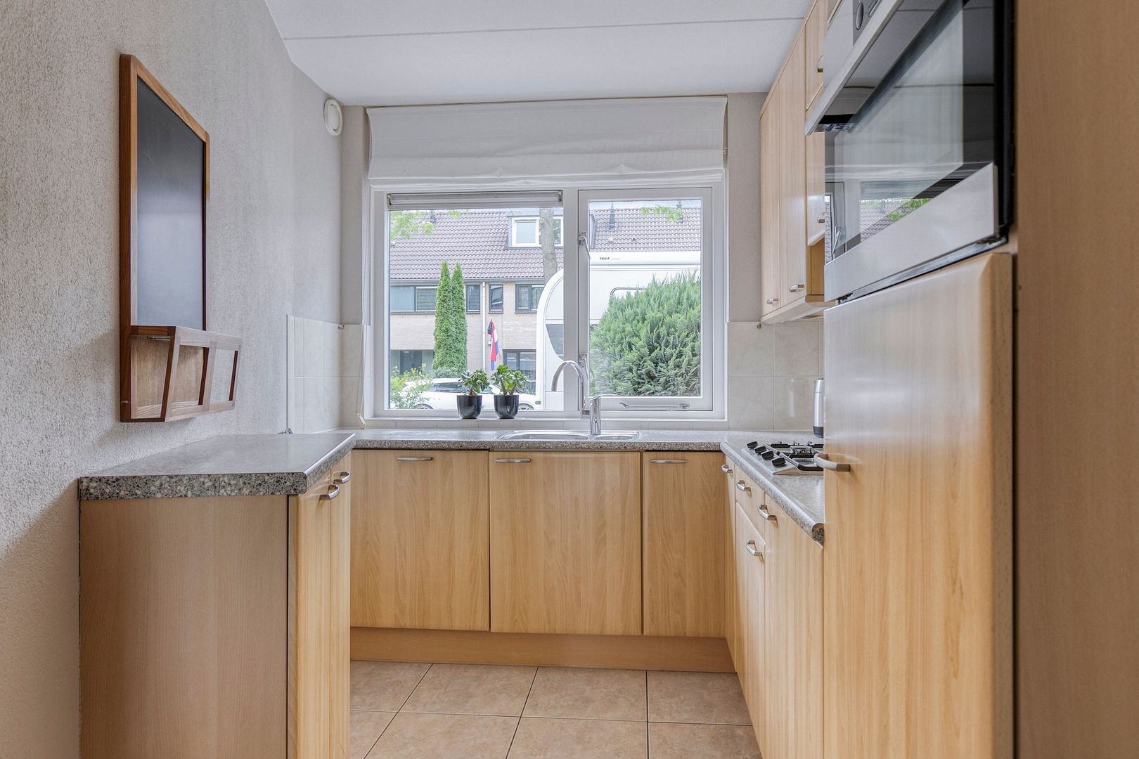 De keuken is gelegen aan de voorzijde en voorzien van diverse inbouwapparatuur, waaronder een vaatwasser, gasfornuis, afzuigkap, combi-magnetron, koelkast en vriezer.