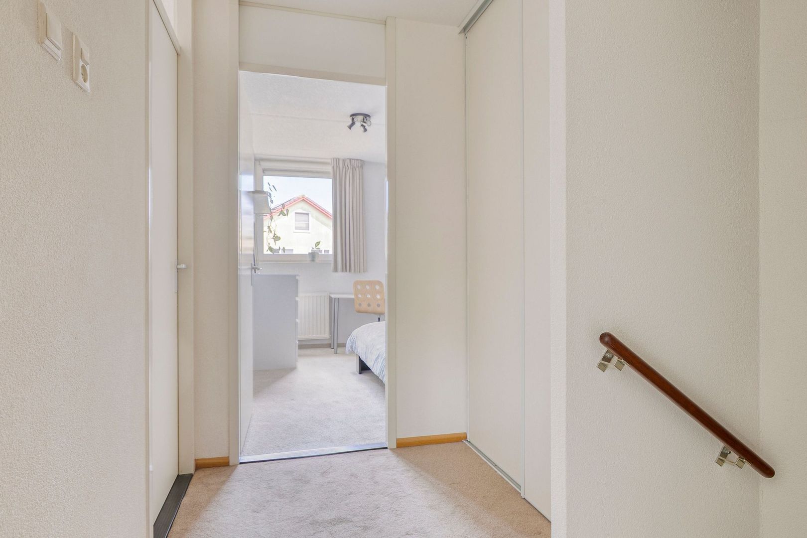 Overloop met vaste kast en toegang tot drie slaapkamers en de badkamer.