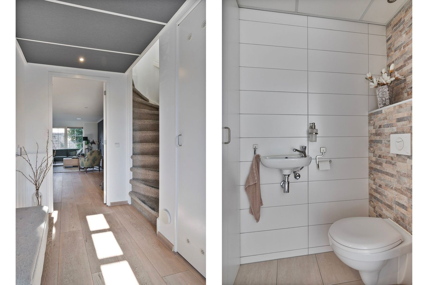 Entree/hal met trapopgang naar de 1e verdieping, meterkast, toilet, opstelplaats van cv-ketel en toegang tot de woonkamer.