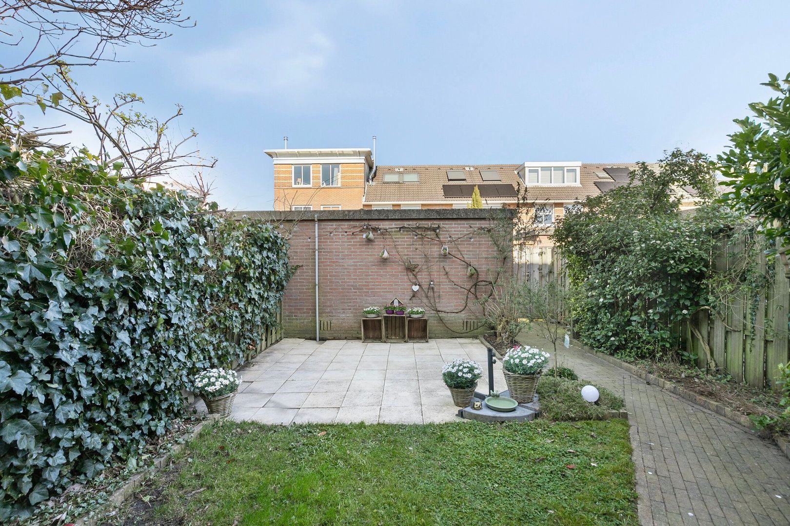Via openslaande deuren heb je toegang tot de achtertuin welke gelegen is op het noordoosten. In de stenen berging kan je de fietsen en tuingereedschap opbergen en via de poort bereik je het achterpad.