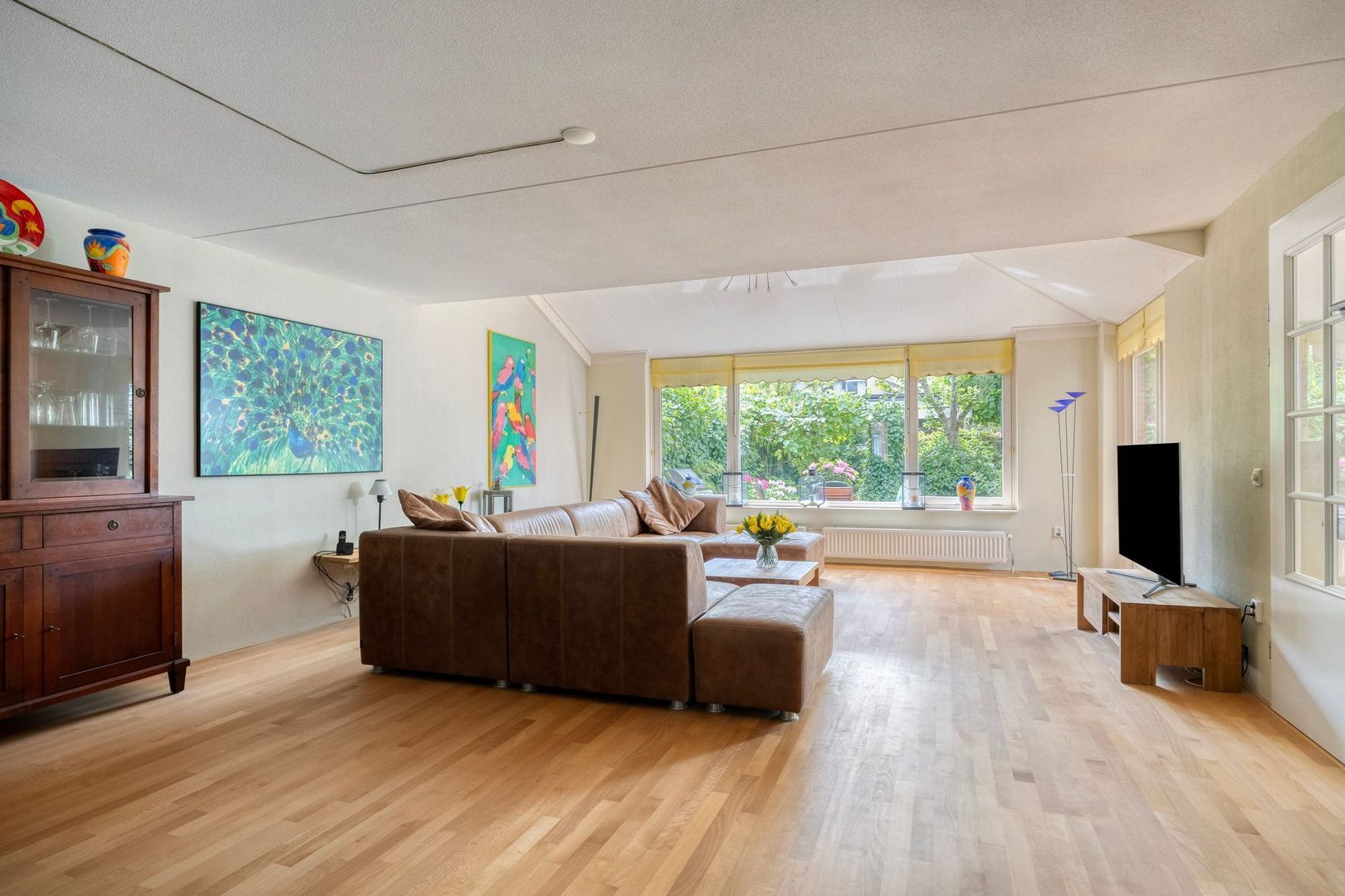 De tuingerichte woonkamer is licht en ruim en biedt toegang tot een extra kamer op de begane grond.