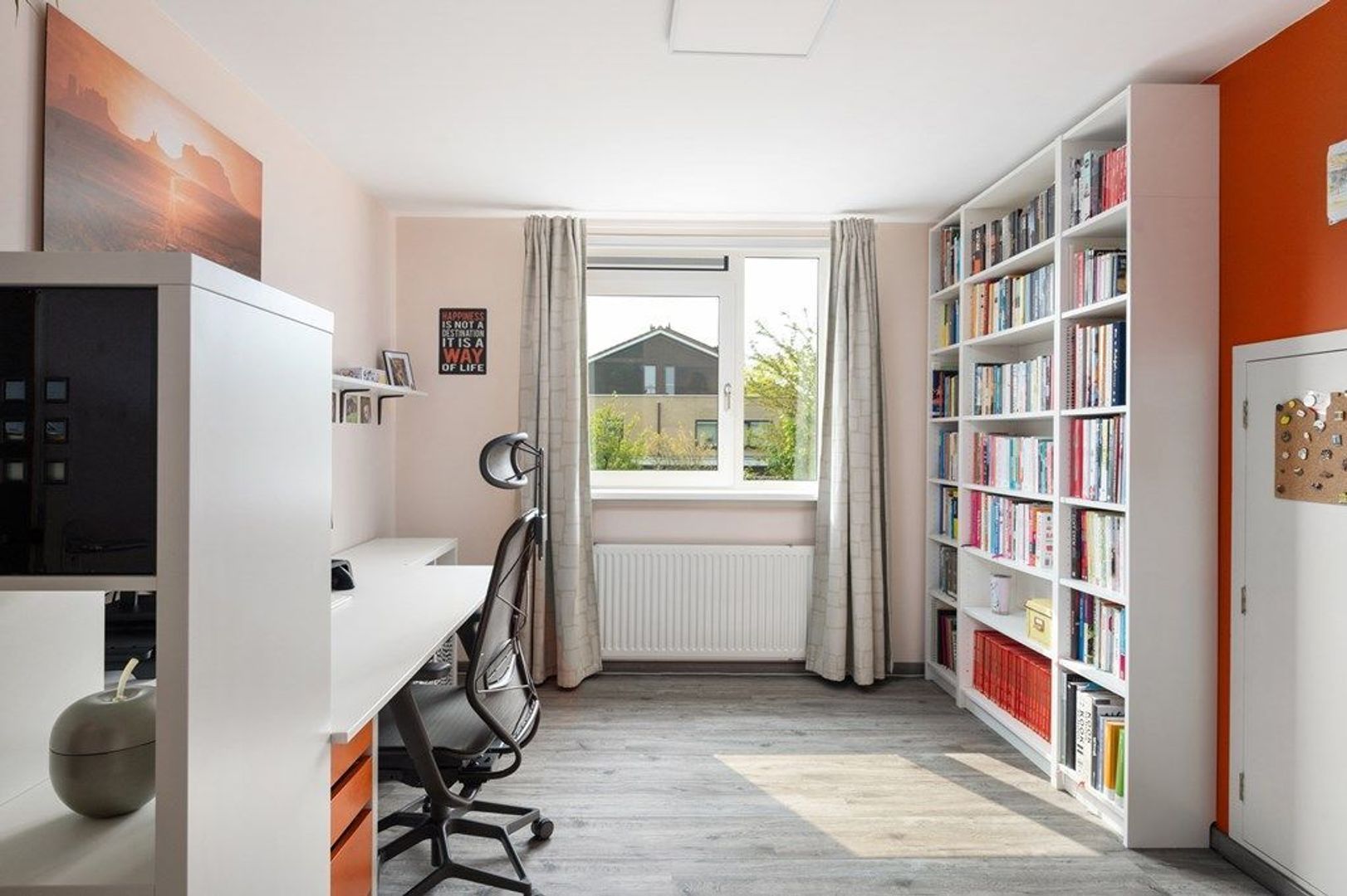 Aan de voorzijde bevindt zich de grote slaapkamer met een extra zijraam waardoor deze kamer heerlijk licht is.