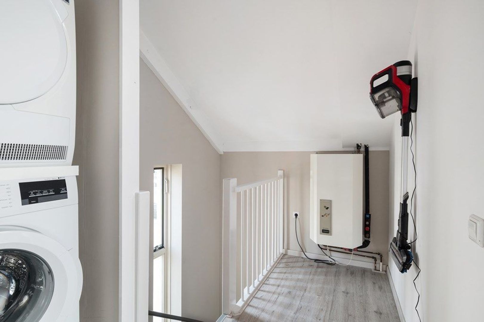 Overloop met toegang tot de zeer ruime slaapkamer, ook vind je hier de opstelplaats voor de wasmachine en droger en de in een kast weggewerkte c.v.-ketel en mechanische ventilatie met extra bergruimte.