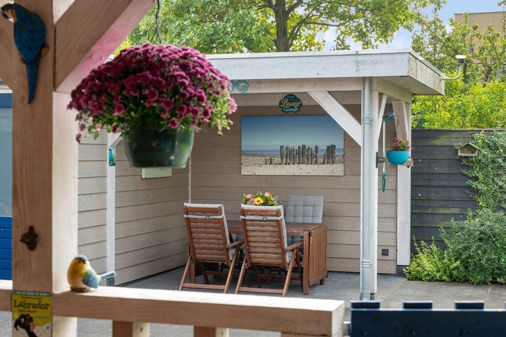 Aan de achtergevel vind je nog een buitenkraan en achterin de tuin bevindt zich nog een aparte houten berging. Ideaal voor het opbergen van de barbecue, tuingereedschap, tuinkussens en fietsen.