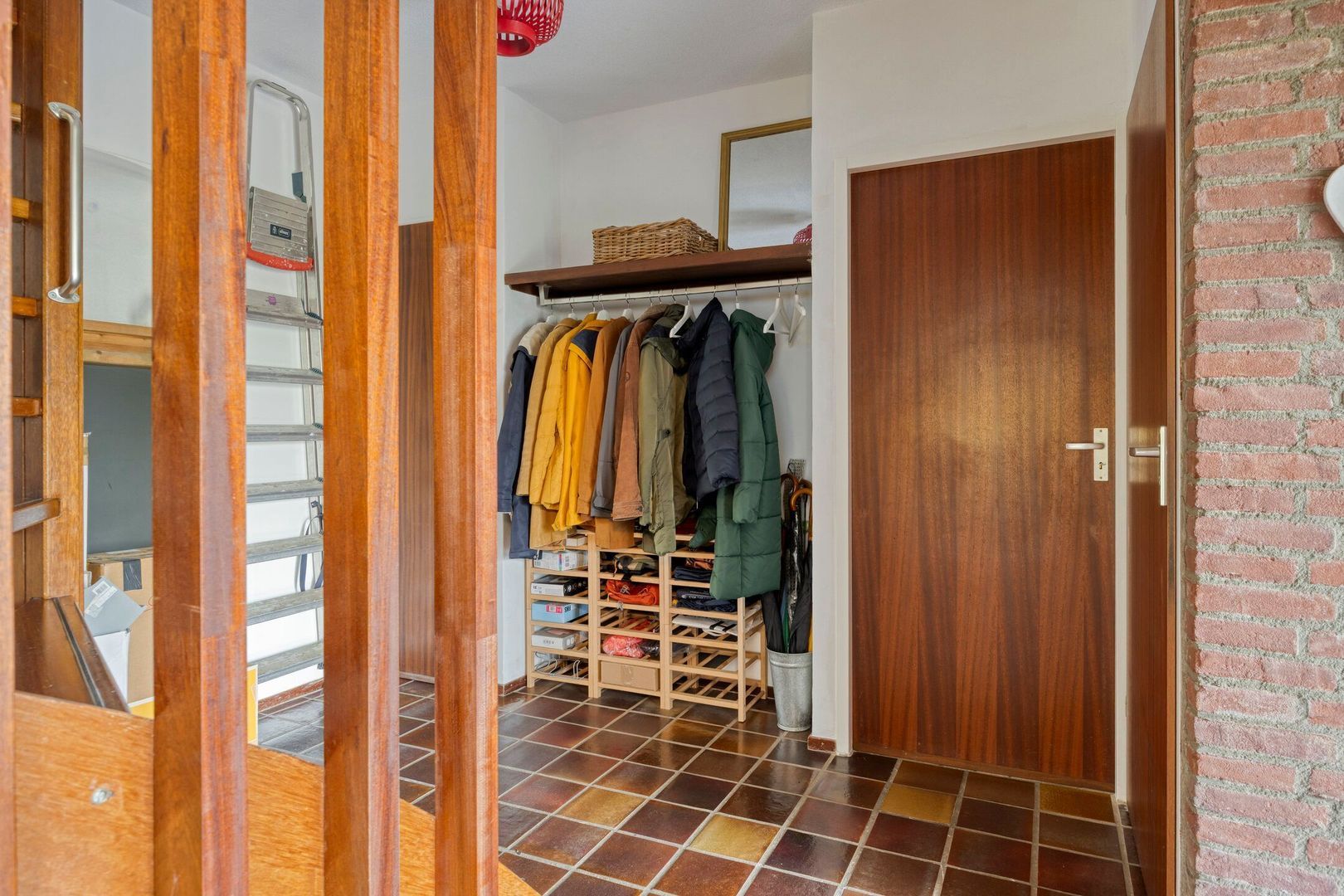 De voortuin met garage, entree, ruime hal met meterkast, deur naar berging, trapopgang naar de 1e verdieping en toiletruimte.