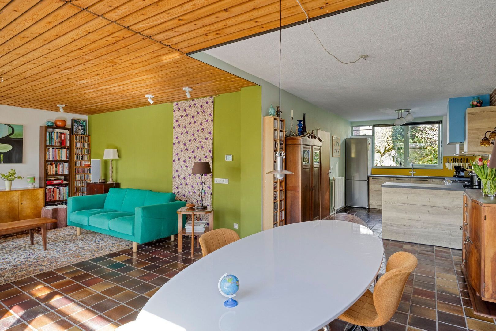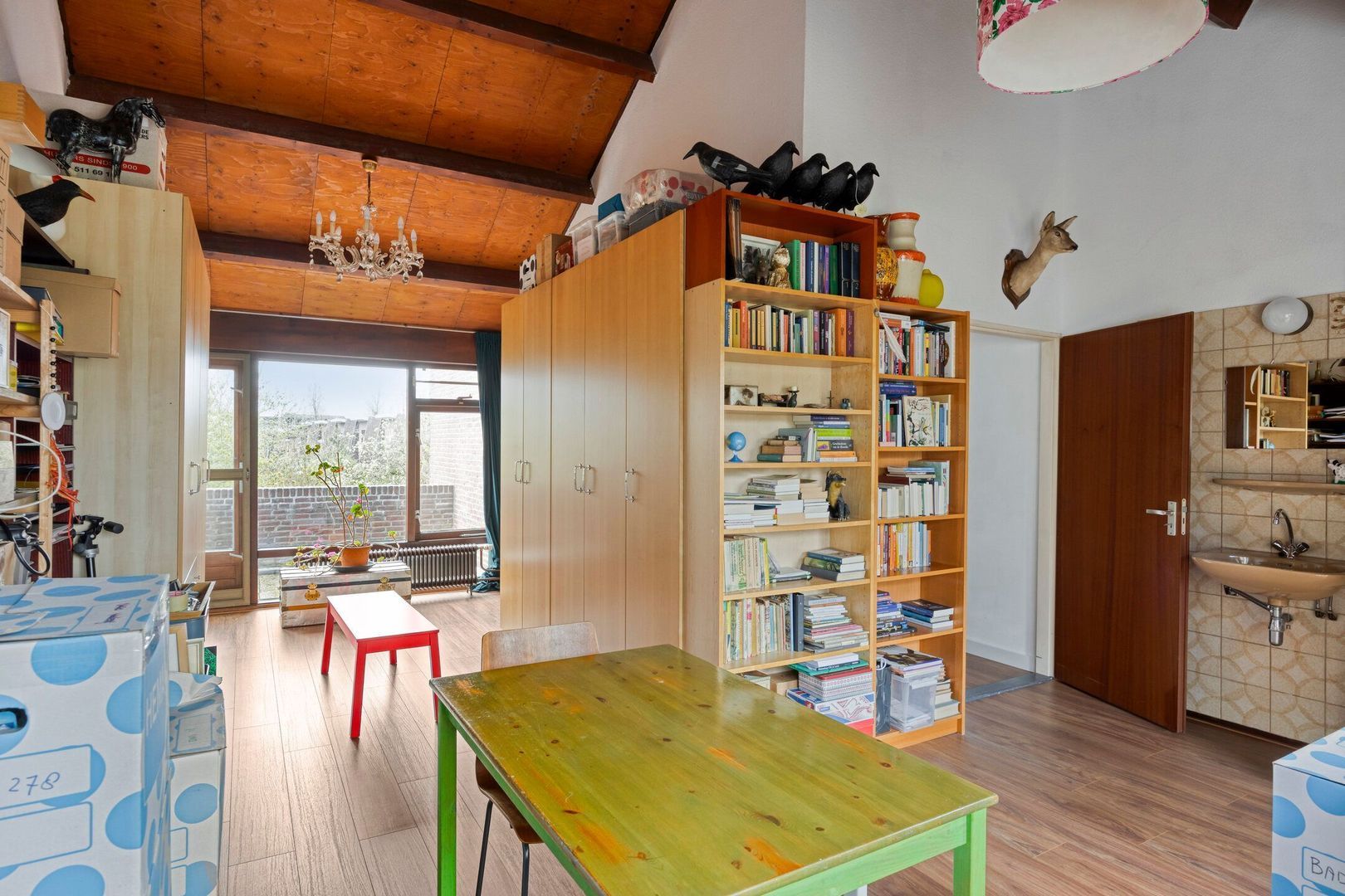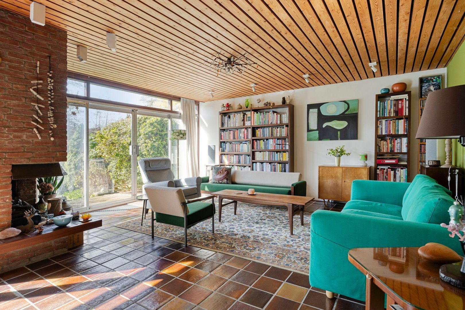 Een lichte woonkamer voorzien van stenen vloer aan de achterzijde van de woning heeft u toegang tot de heerlijke fraai aangelegde zonnige achtertuin op het zuidwesten met een zij-uitgang.