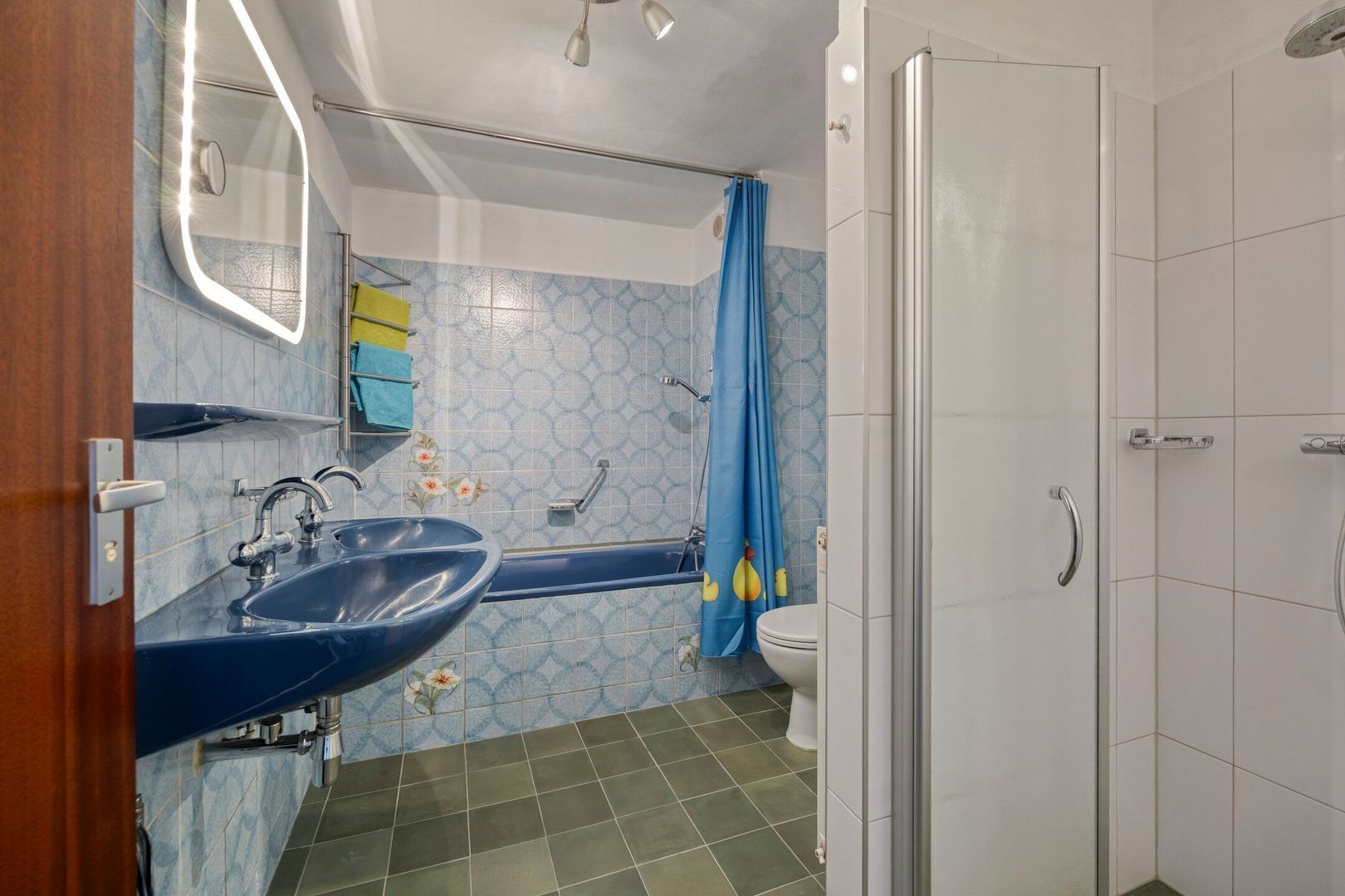 Overloop, toegang tot 3 ruime slaapkamers en een volledig betegelde badkamer met bad, douche, toilet, dubbele wastafel. Slaapkamers aan de voor- en achterzijde van de woning met toegang tot een balkon aan beide kanten. Trapopgang naar de 2de verdieping.
