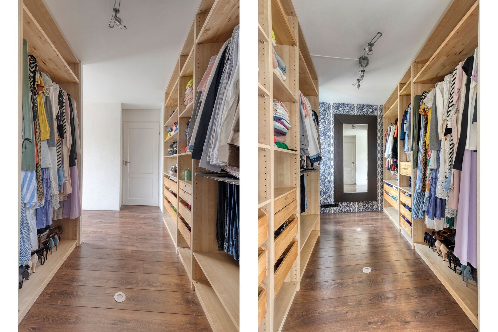 Slaapkamer aan de achterkant voorzien van airco en dakkapel met elektrische rolluiken. Deze kamer heeft een overzichtelijke inloopkast met raam.