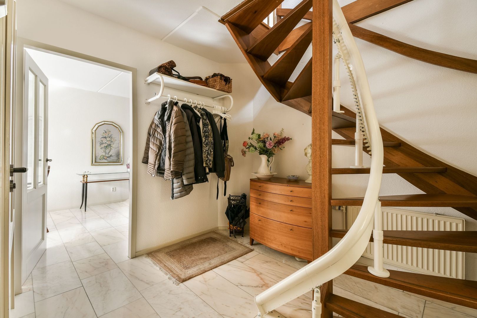 Voortuin met toegang tot de woning en de garage. Hal met meterkast, trapopgang naar de eerste verdieping en toilet.