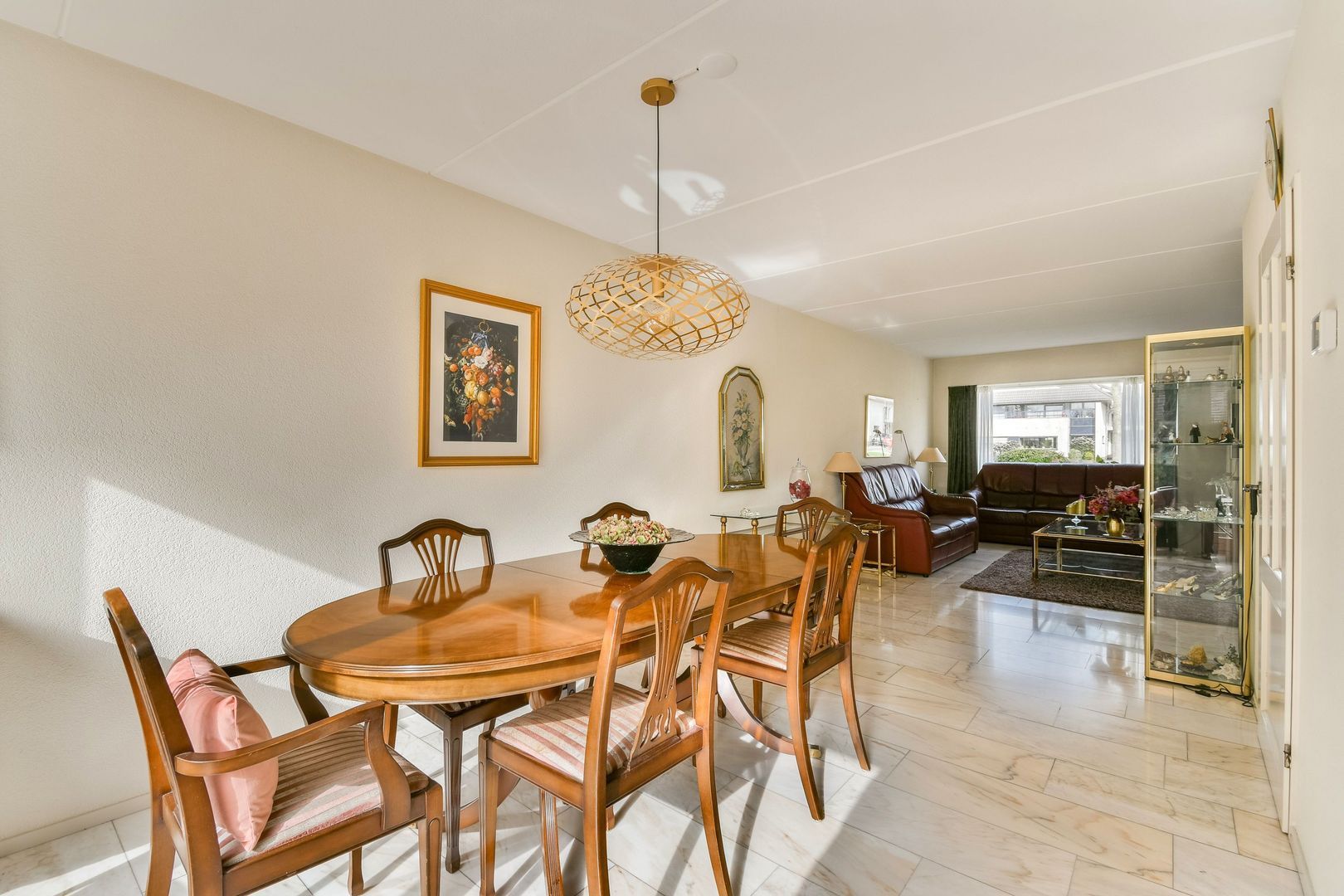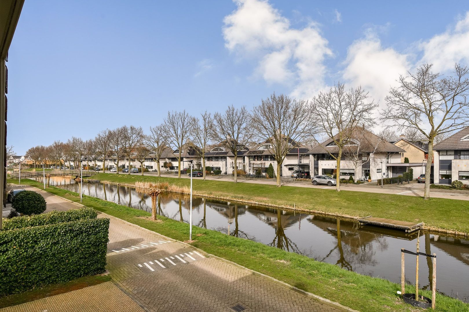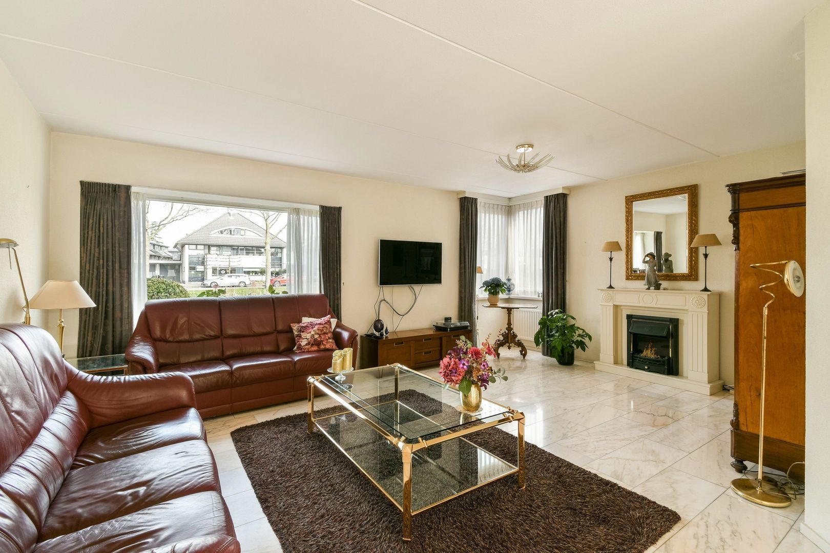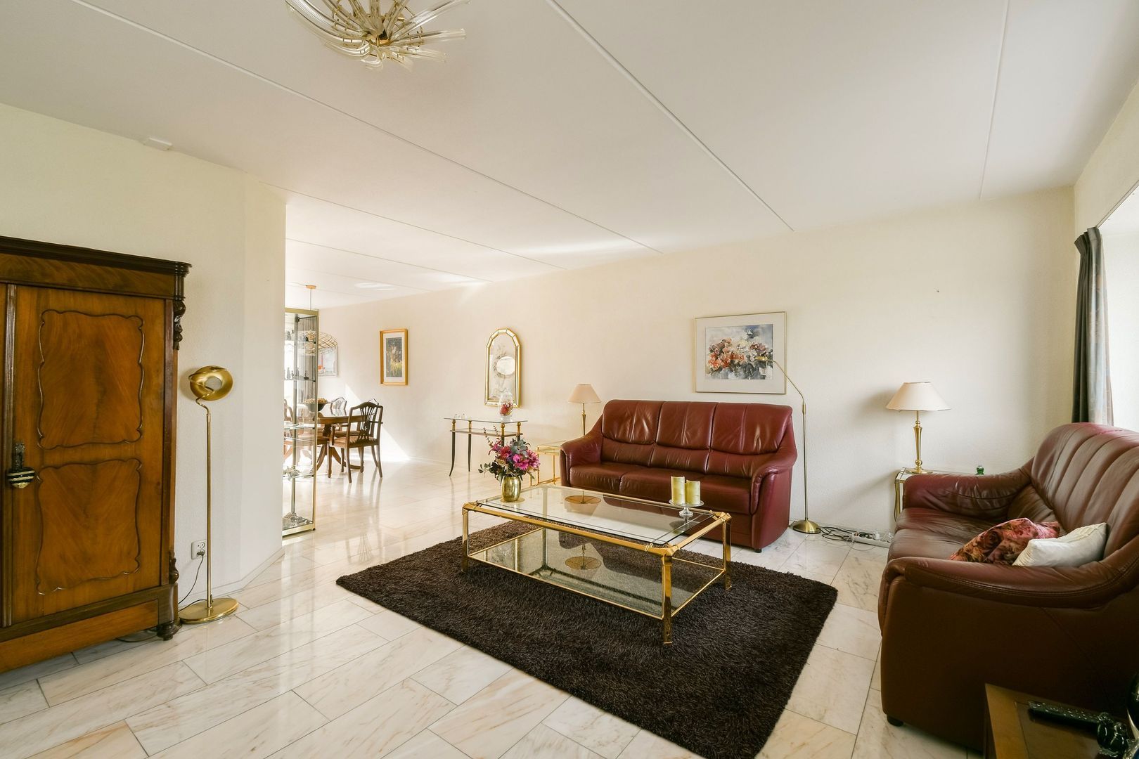 De lichte royale woonkamer heeft aan de voorzijde een fraai uitzicht op het water en is voorzien van een lichte marmeren tegelvloer. Aan de achterzijde is het fijn koffie drinken in het zonnetje met zicht op de tuin.