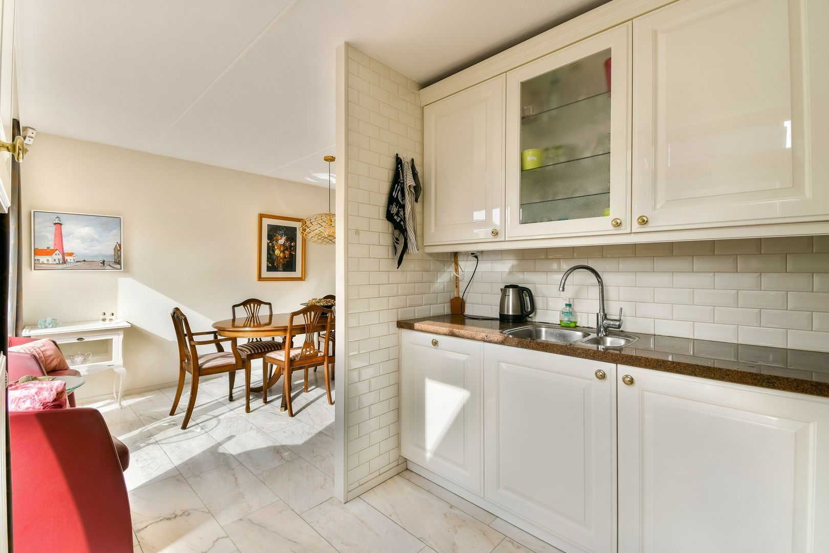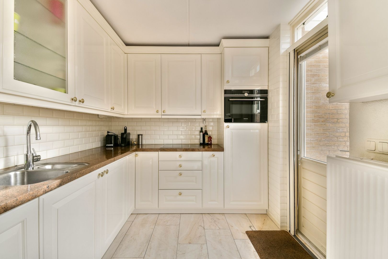 De keuken bevindt zich aan de achterzijde van de woning en is uitgerust met een vaatwasser, koelkast, vriezer, combi-oven, inductiekookplaat en afzuigkap. Vanuit de keuken heb je toegang tot de ruime, zonnige en fraai aangelegde achtertuin.