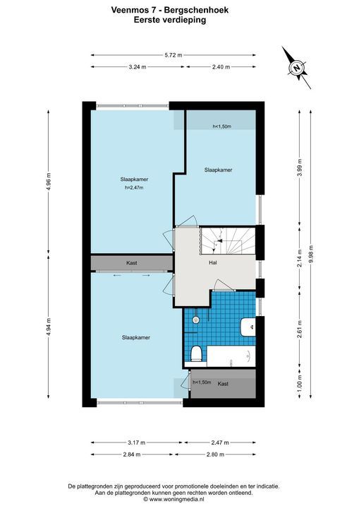 De woning is conform de Branchebrede Meetinstructie (BBMI) opgemeten. De Meetinstructie is bedoeld om een meer eenduidige manier van meten toe te passen voor het geven van een indicatie van de gebruiksoppervlakte. De Meetinstructie sluit verschillen in meetuitkomsten niet volledig uit, door bijvoorbeeld interpretatieverschillen, afrondingen of beperkingen bij het uitvoeren van de meting.