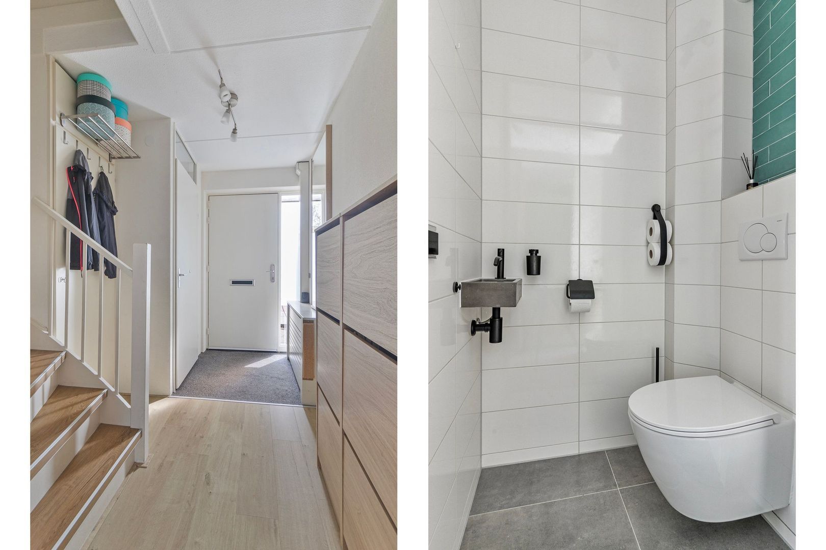 Entree/hal met trapopgang naar de 1e verdieping, toilet, meterkast en toegang tot de woonkamer. De gehele begane grond is voorzien van vloerverwarming, met uitzondering van het toilet.