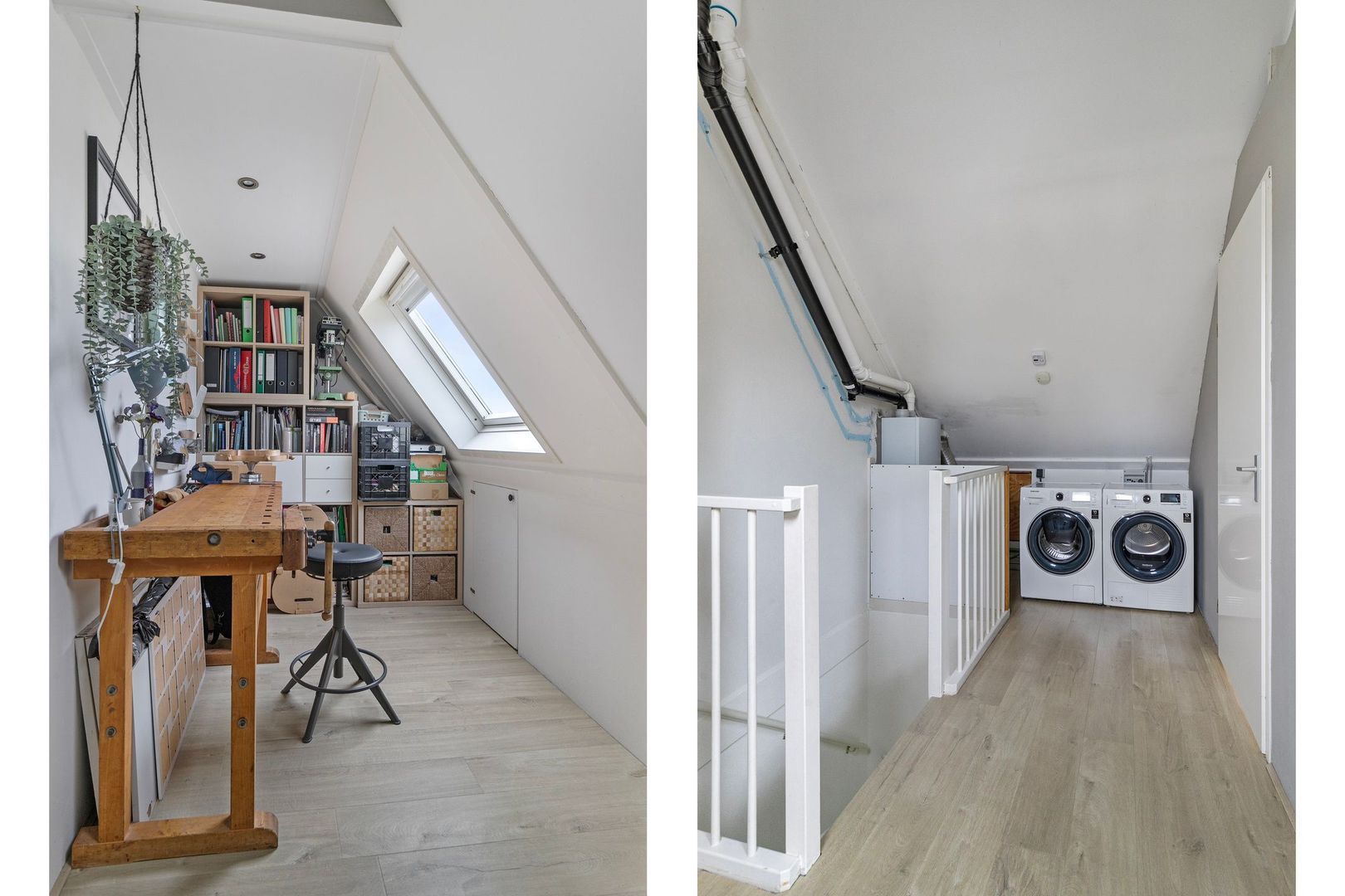 Op de tweede verdieping bevindt zich de overloop waar de cv-ketel (2024), omvormer voor zonnepanelen en de aansluiting voor de wasmachine en droger.