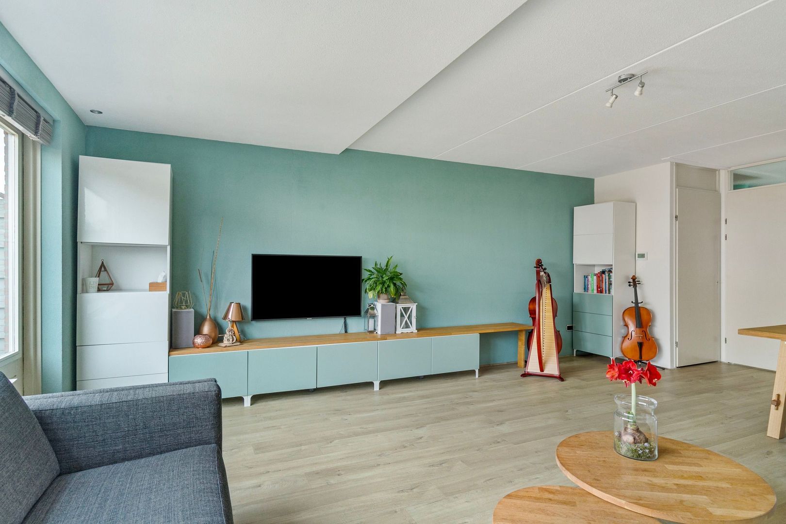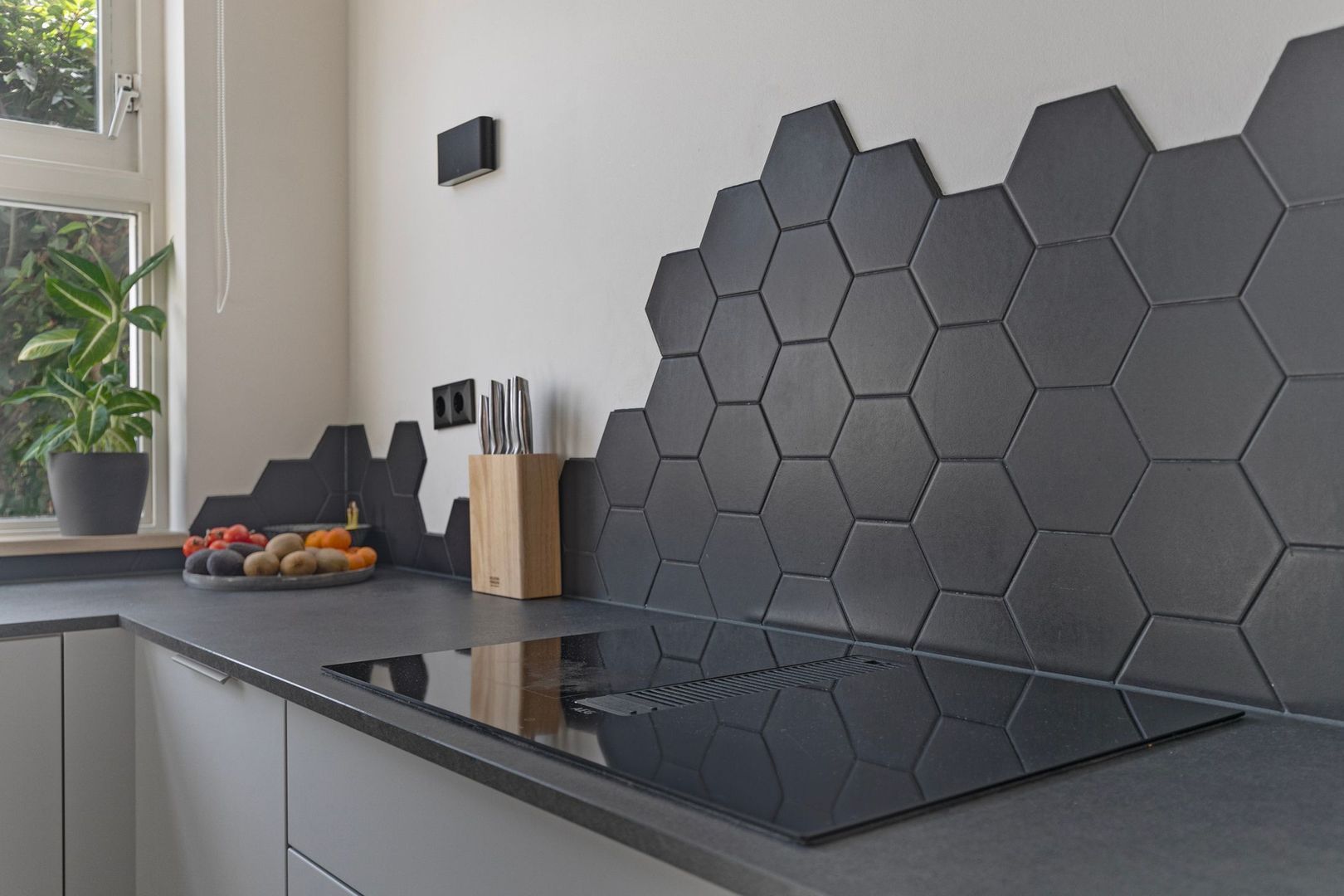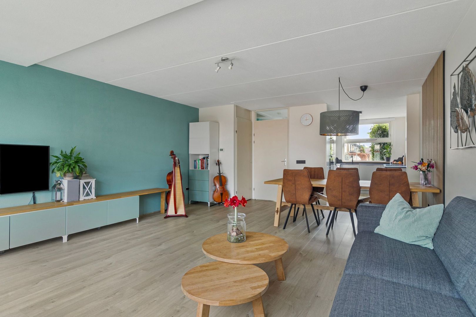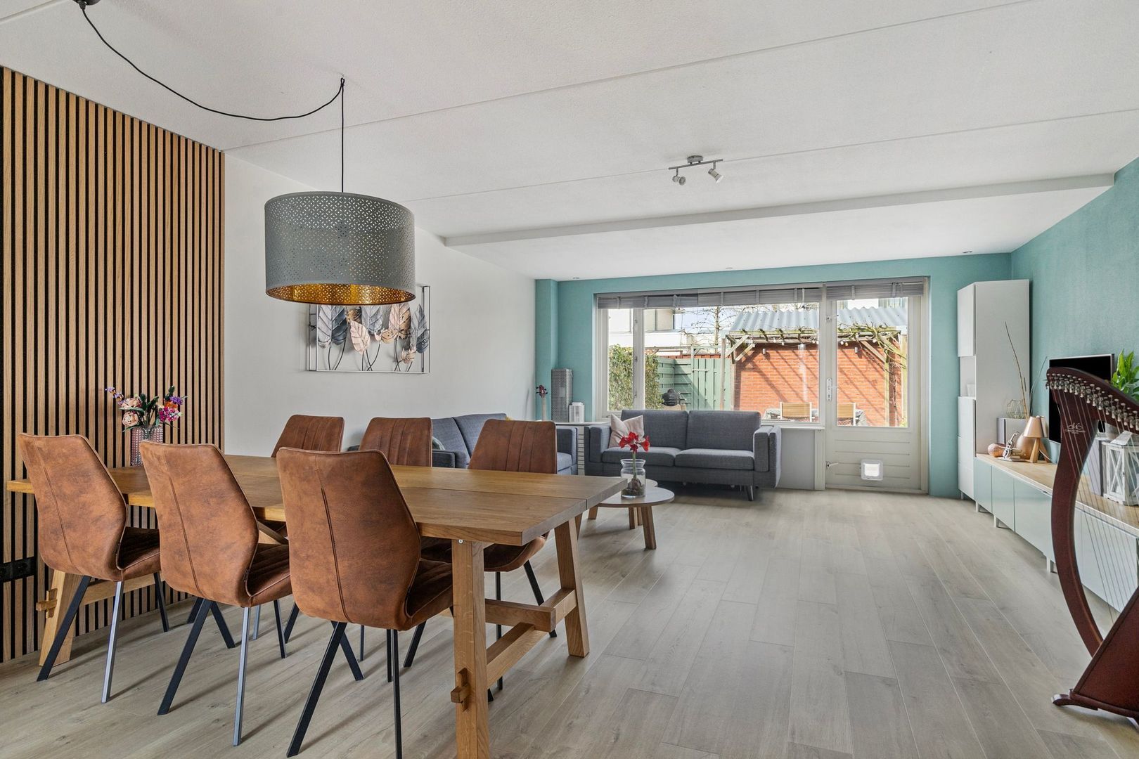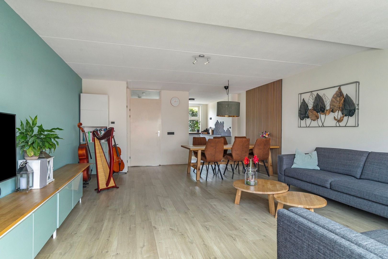 De ruime woonkamer is gelegen aan de achterzijde en is voorzien van een mooie laminaat vloer en trapkast. De moderne open keuken beschikt over diverse inbouwapparatuur waaronder een vaatwasser, koel-vries combinatie, inductiekookplaat met geïntegreerde afzuiging, Quooker, stoomoven en combi-oven.