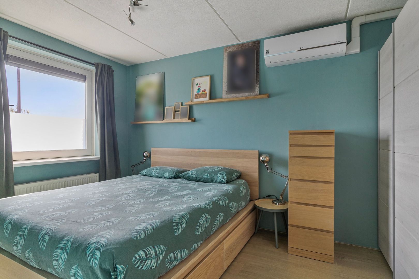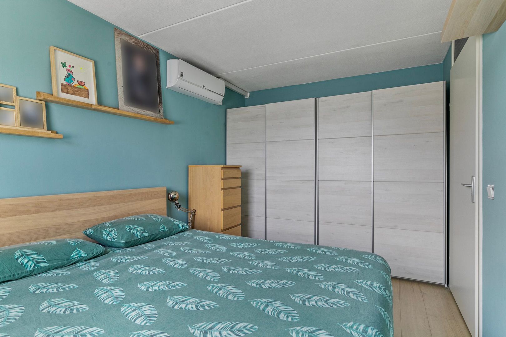 Slaapkamer 3, de ruime ouderslaapkamer bevindt zich aan de voorzijde van de woning en is voorzien van een elektrisch rolluik en airconditioning.