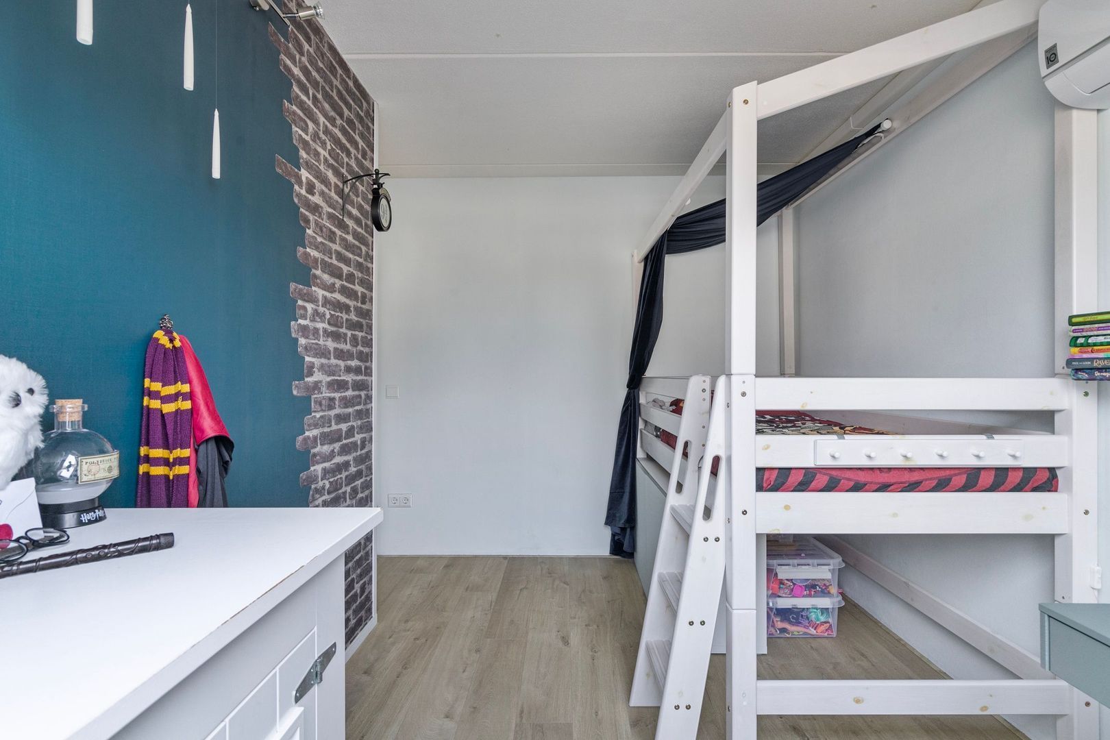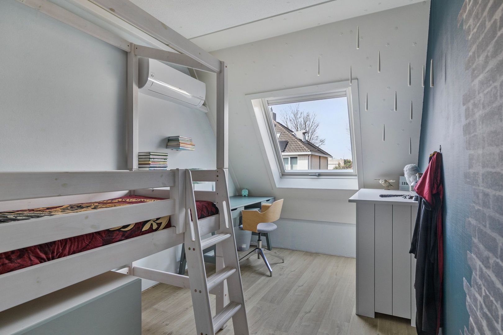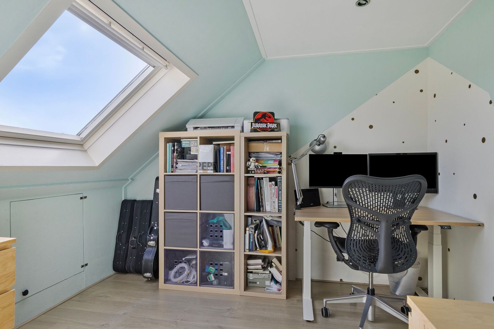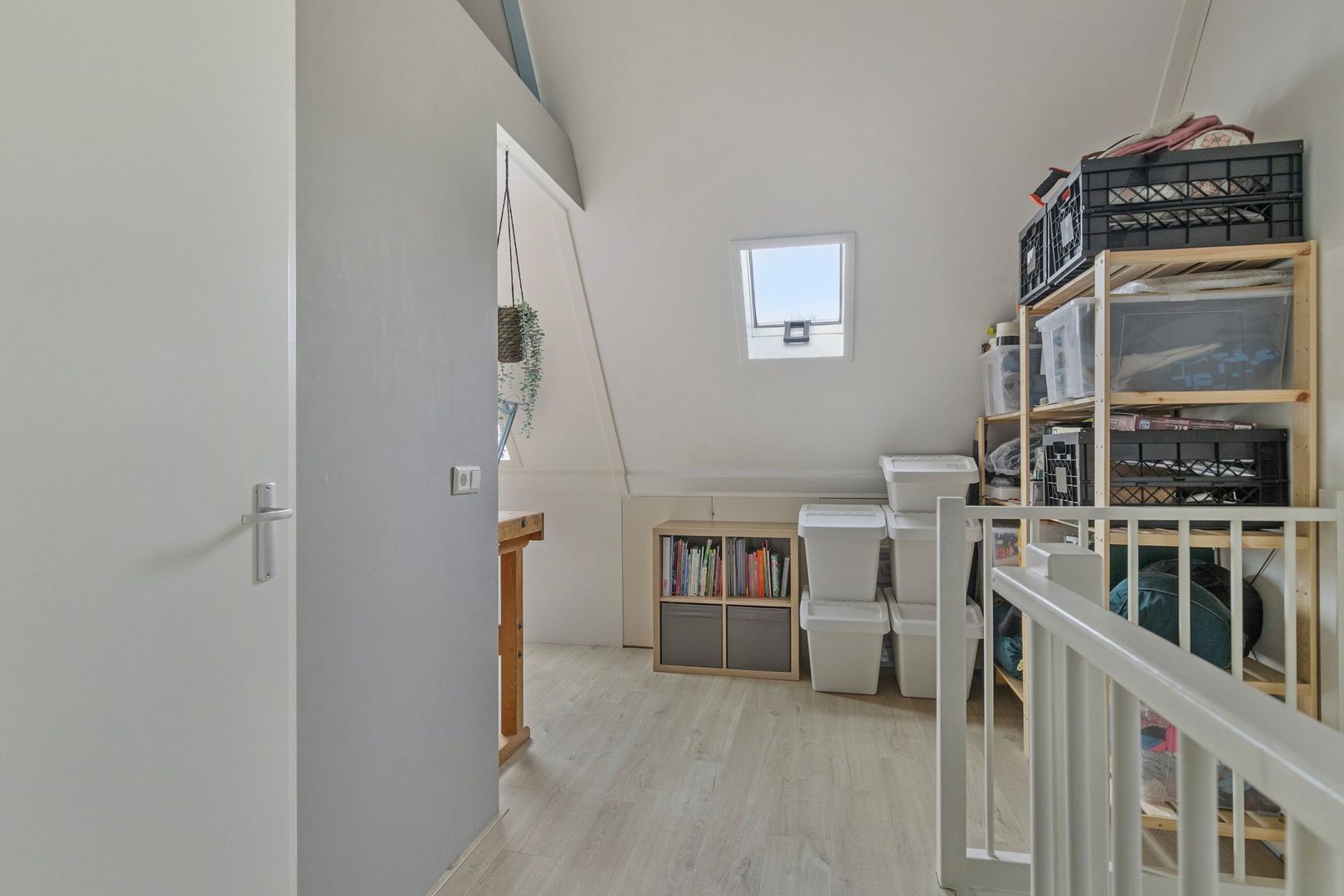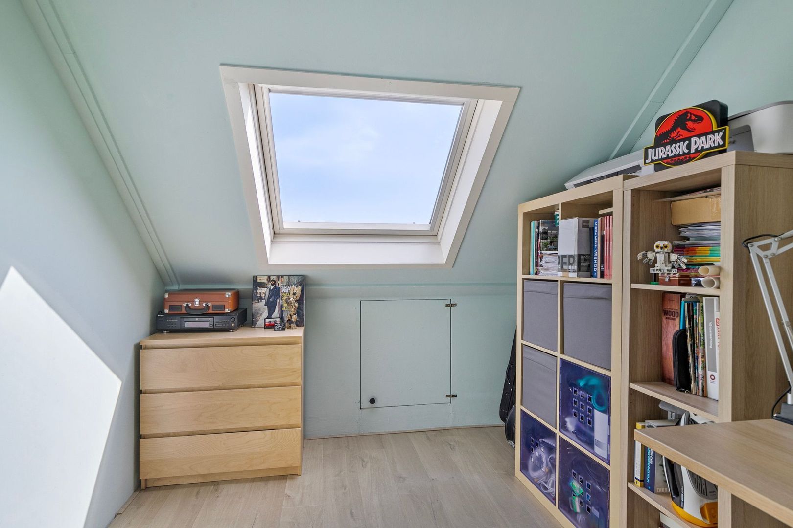 Op de zolder bevindt zich ook de vierde slaapkamer. Achter de knieschotten vindt u aan beide zijden van de woning opbergruimte.