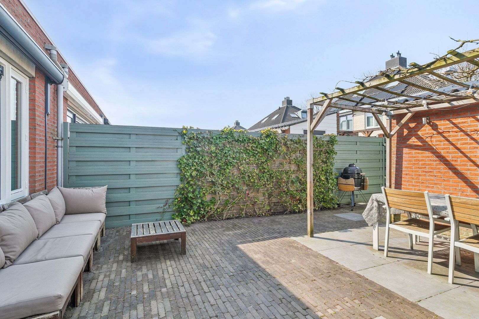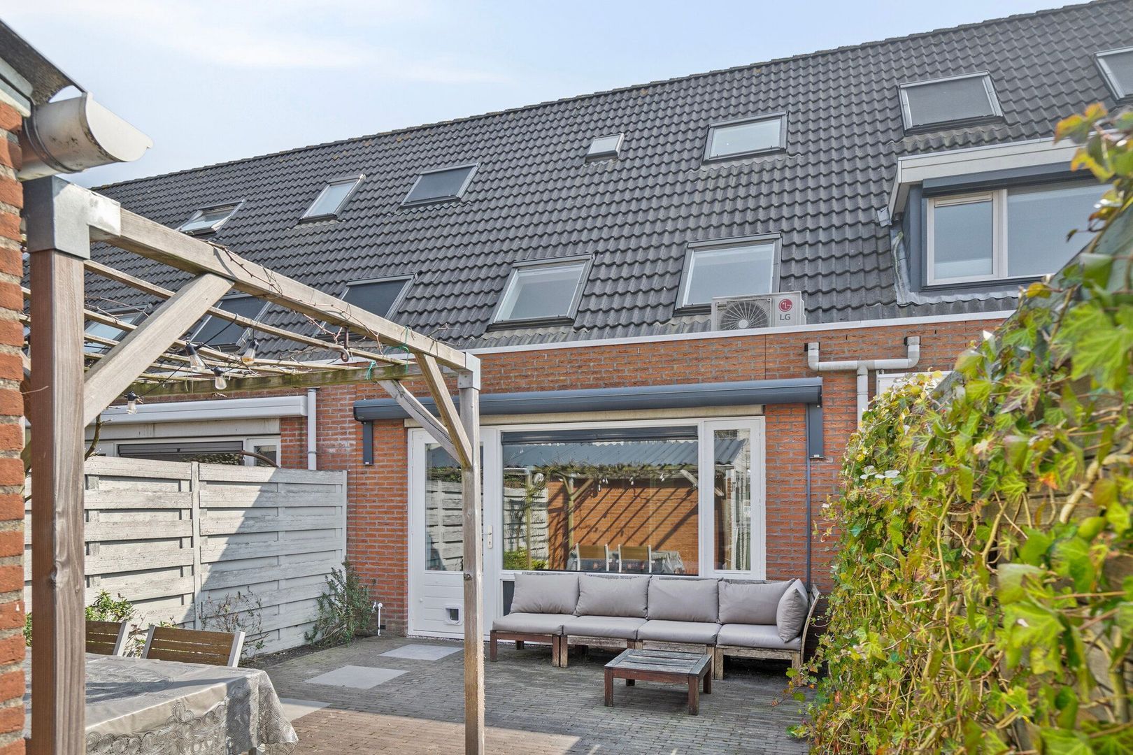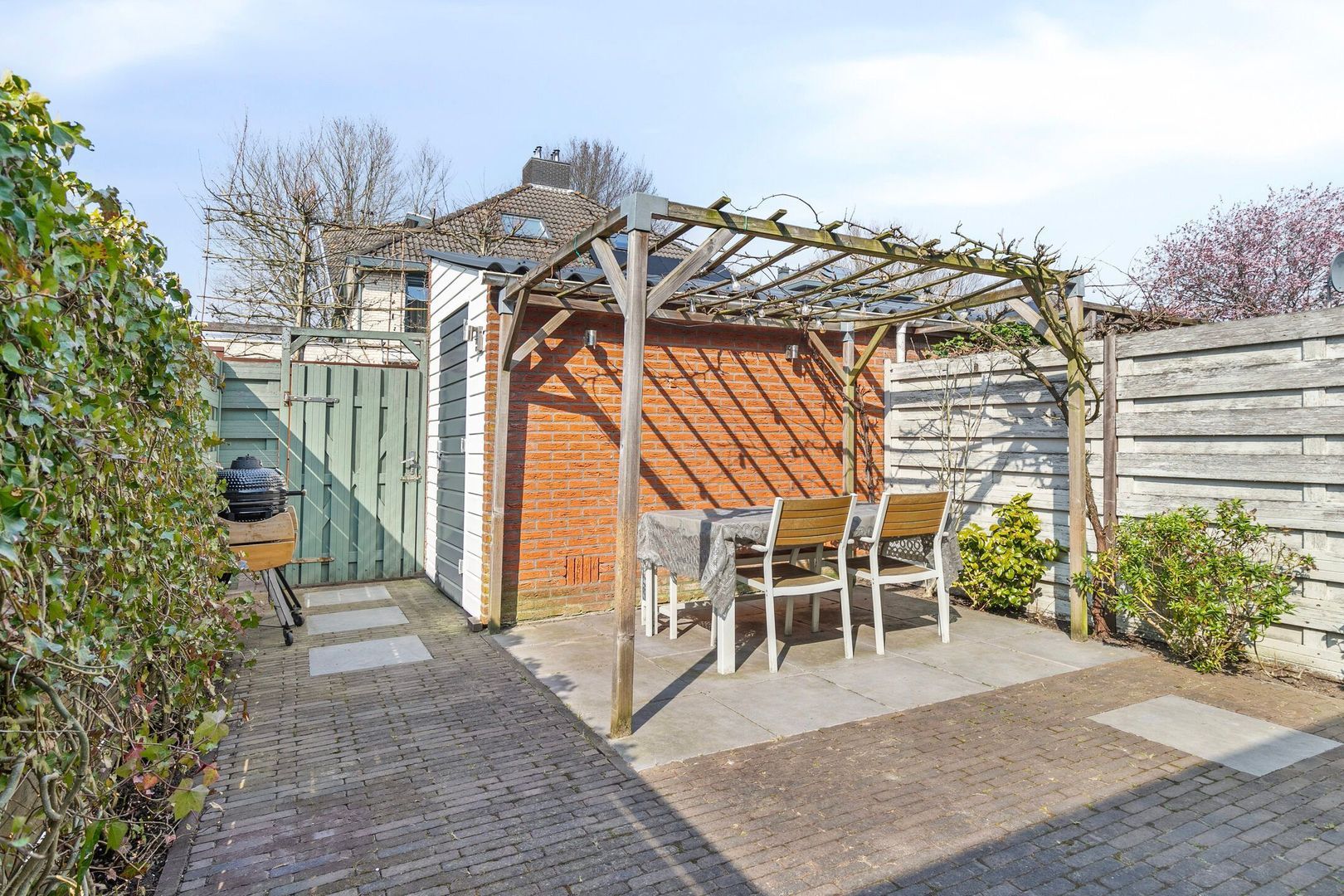 Via de woonkamer heb je toegang tot de achtertuin, die op het noordwesten is gelegen. De tuin is voorzien van een berging en een elektrisch zonnescherm.