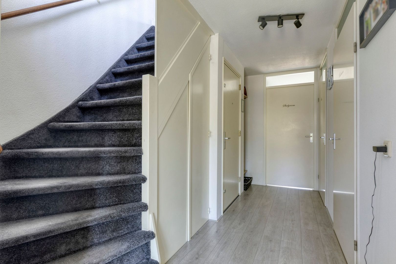 Entree met hal, trapopgang naar de tweede verdieping, toilet, bergkast en een aparte berging met aansluitingen voor wasmachine en droger. Vanuit de hal is er toegang tot alle vertrekken.