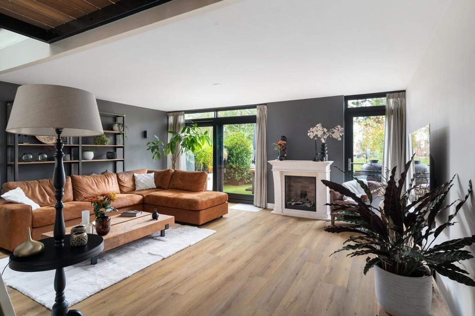 Ruime living met een schuifpui en een loopdeur naar de tuin. De entree en de living zijn voorzien van een mooie pvc vloer.