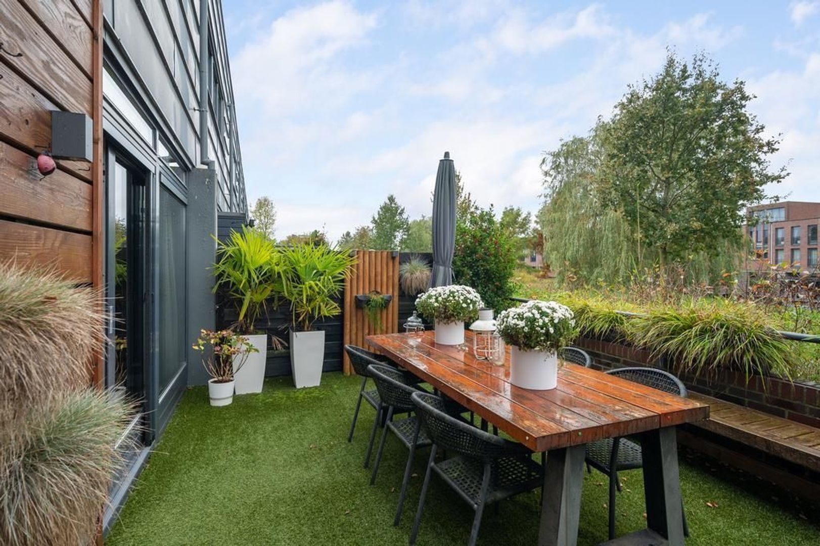 Het ruime dakterras (ca. 28m²) is te bereiken vanuit de overloop en is gelegen op het zuidwesten.