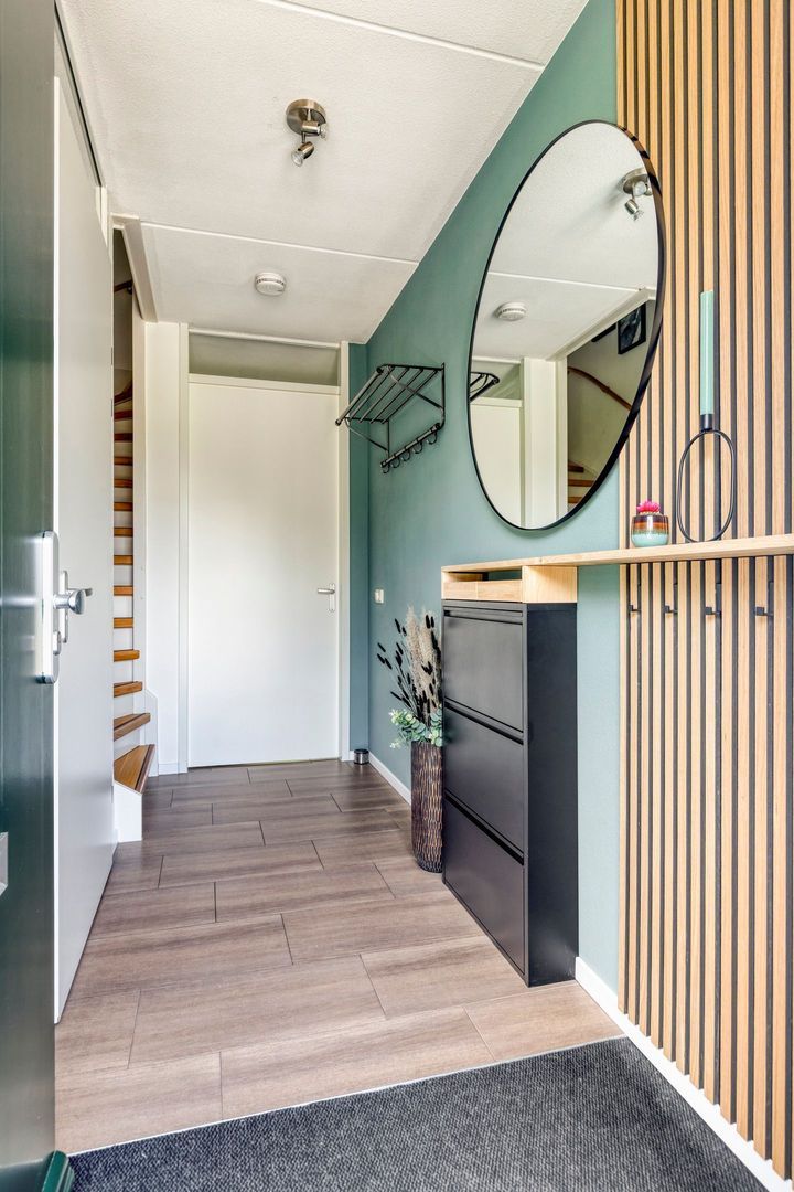 Entree/hal met meterkast, modern toilet, trapopgang naar de eerste verdieping en toegang tot de woonkamer.