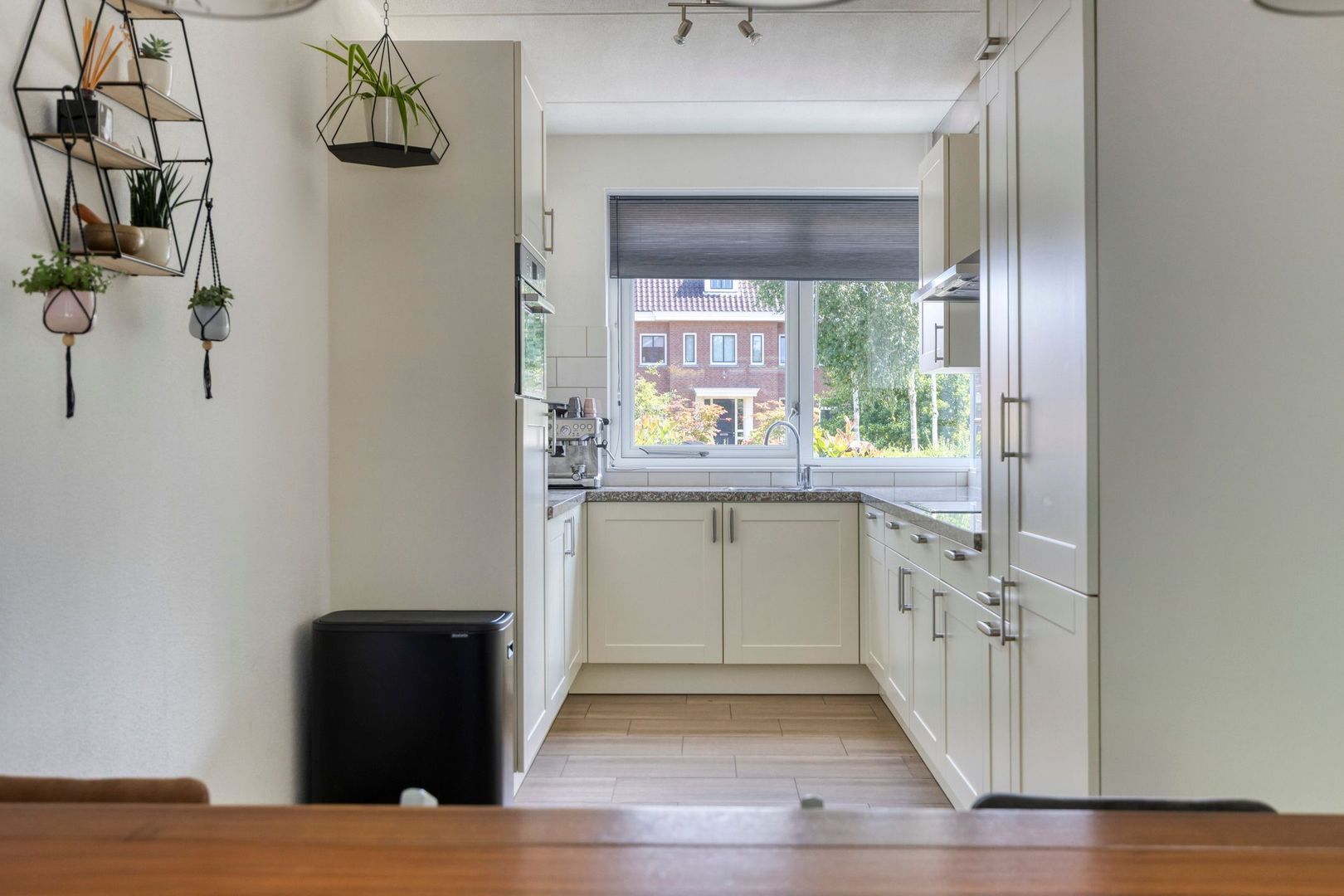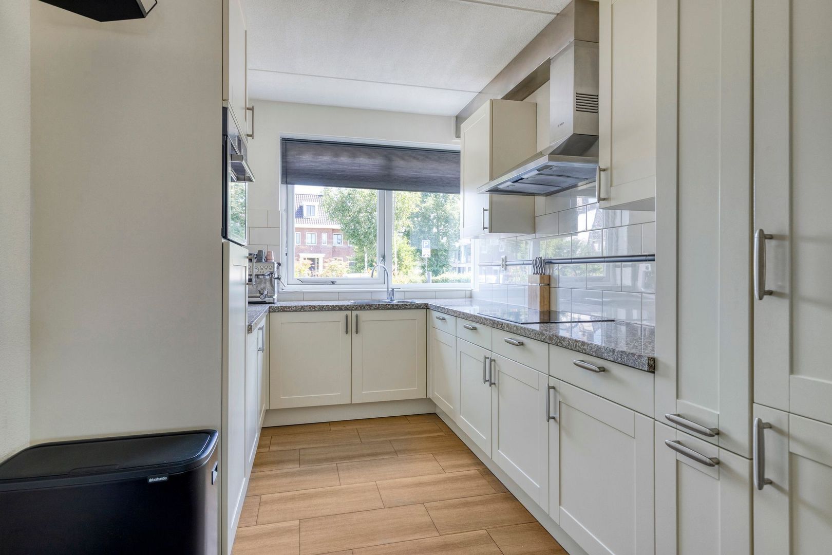 De keuken aan de voorzijde is voorzien van diverse inbouwapparatuur, waaronder een inductiekookplaat, afzuigkap, vaatwasser, koel-/vriescombinatie en combi-oven.