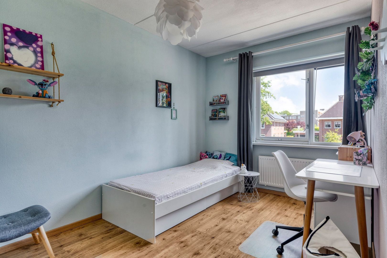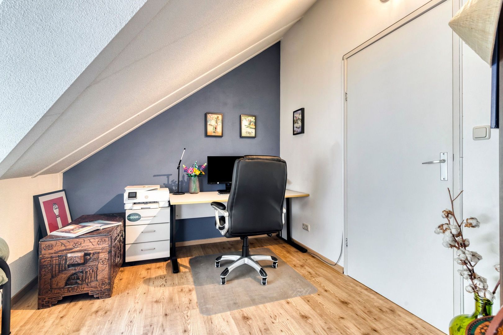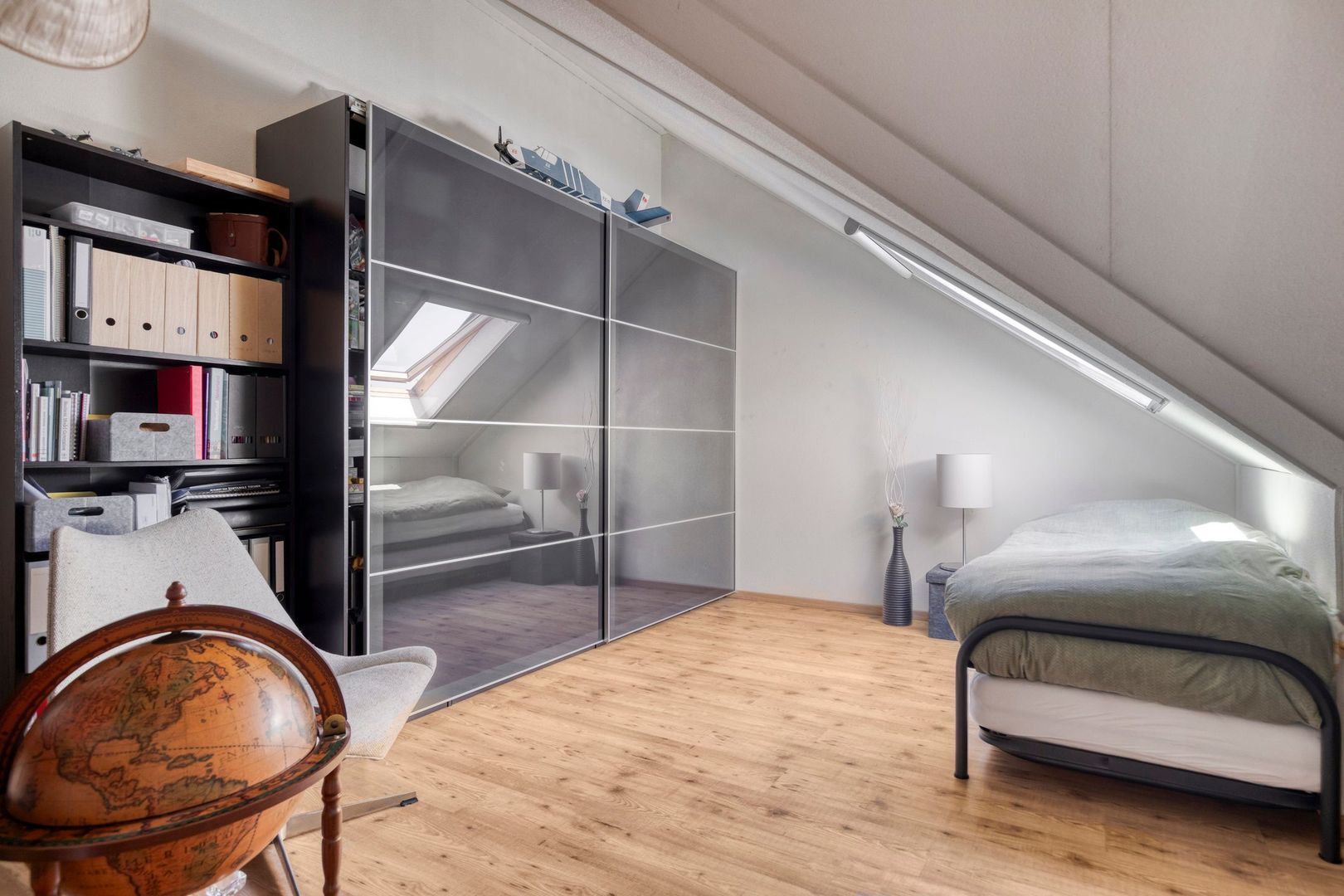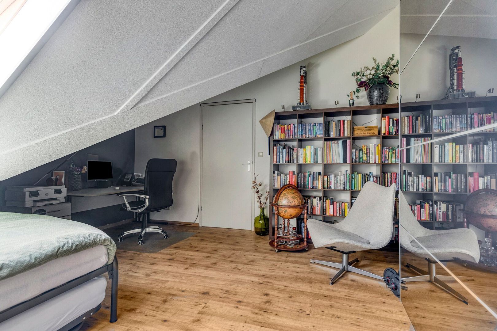 Slaapkamer 4 ligt aan de achterzijde en is voorzien van een dakraam. Ook deze verdieping is afgewerkt met een laminaatvloer.