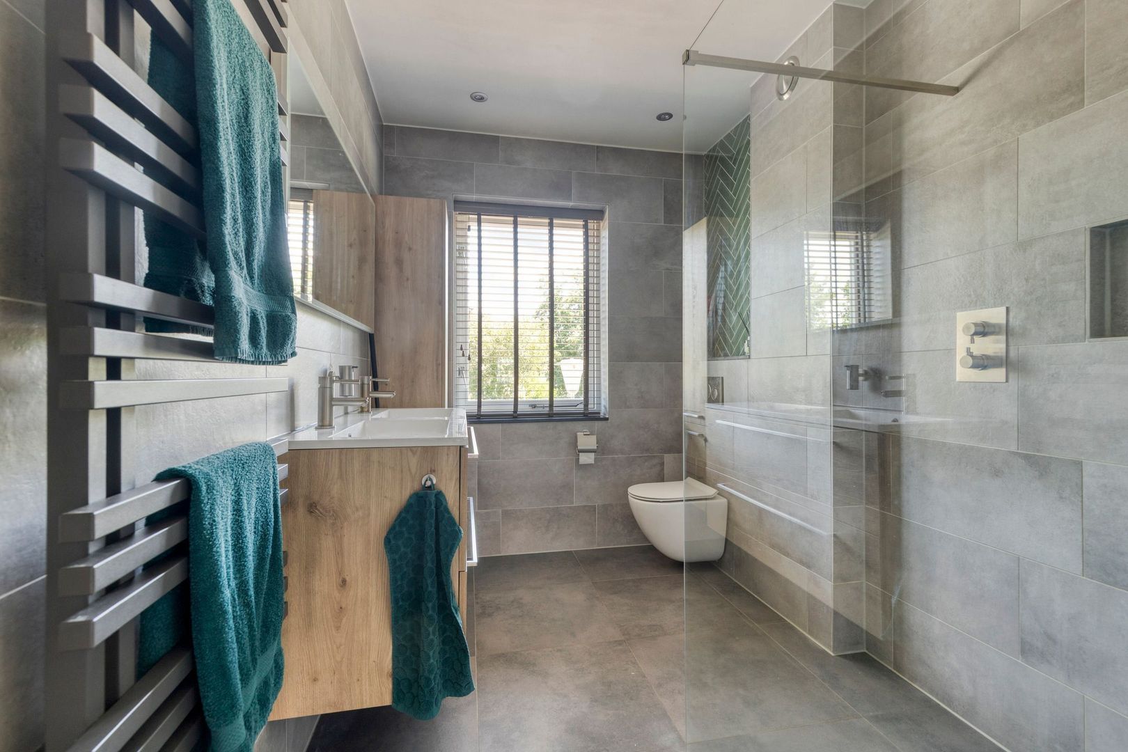 De badkamer is in 2022 vernieuwd en voorzien van een inloopdouche, tweede toilet, dubbel wastafelmeubel en handdoekradiator.