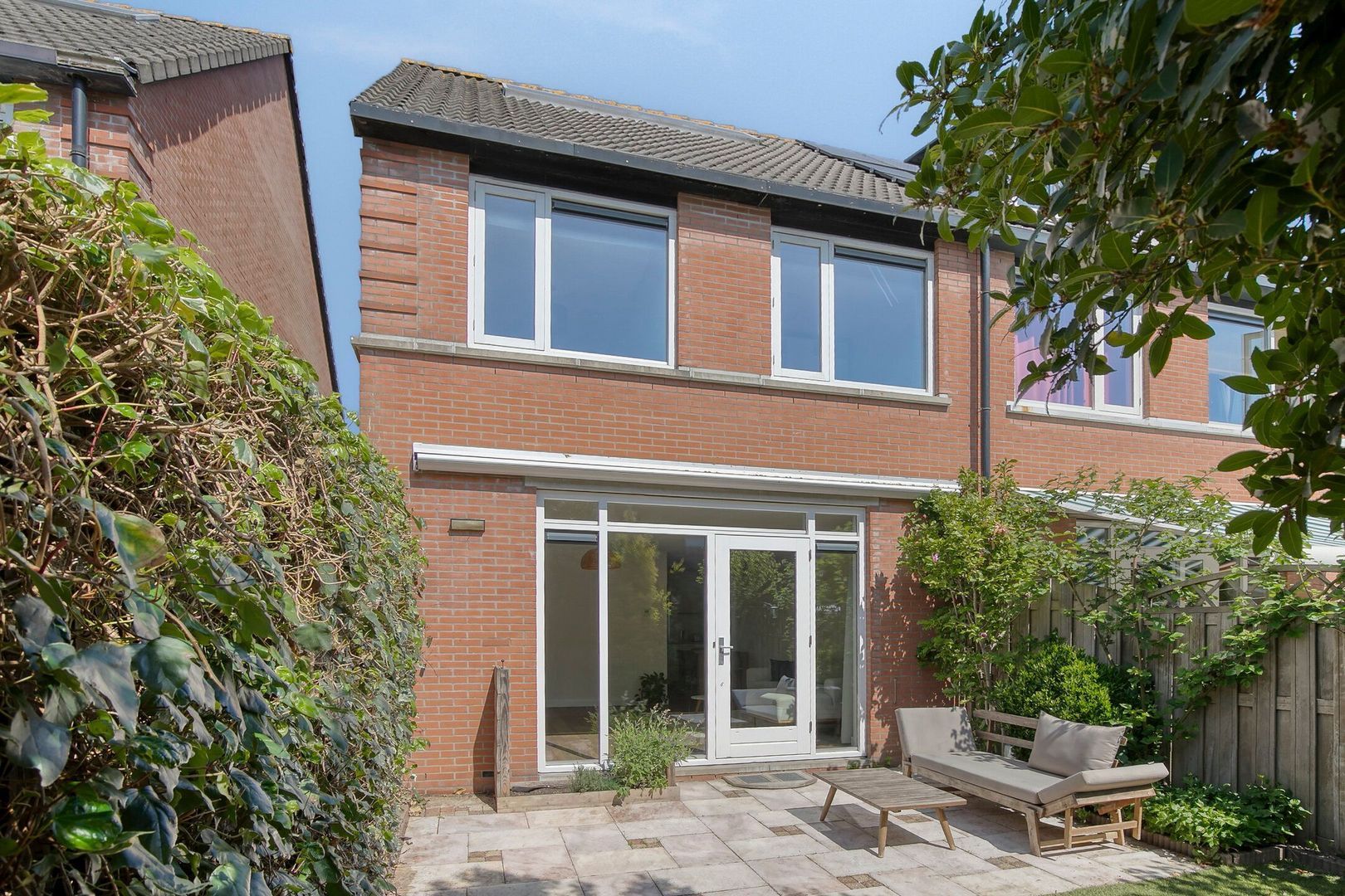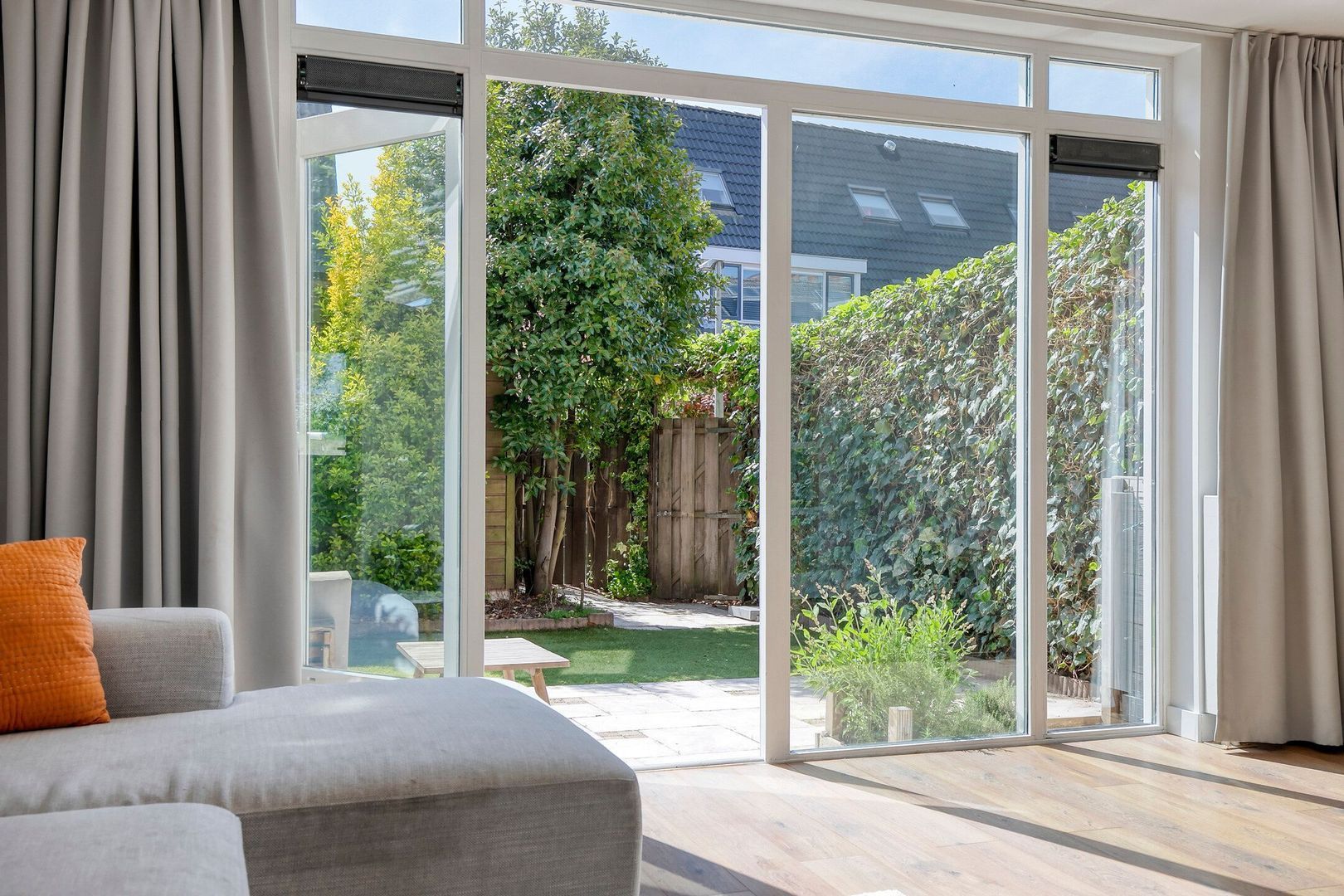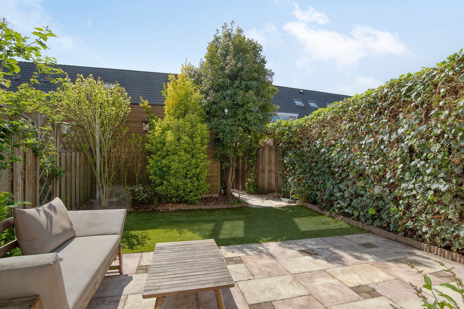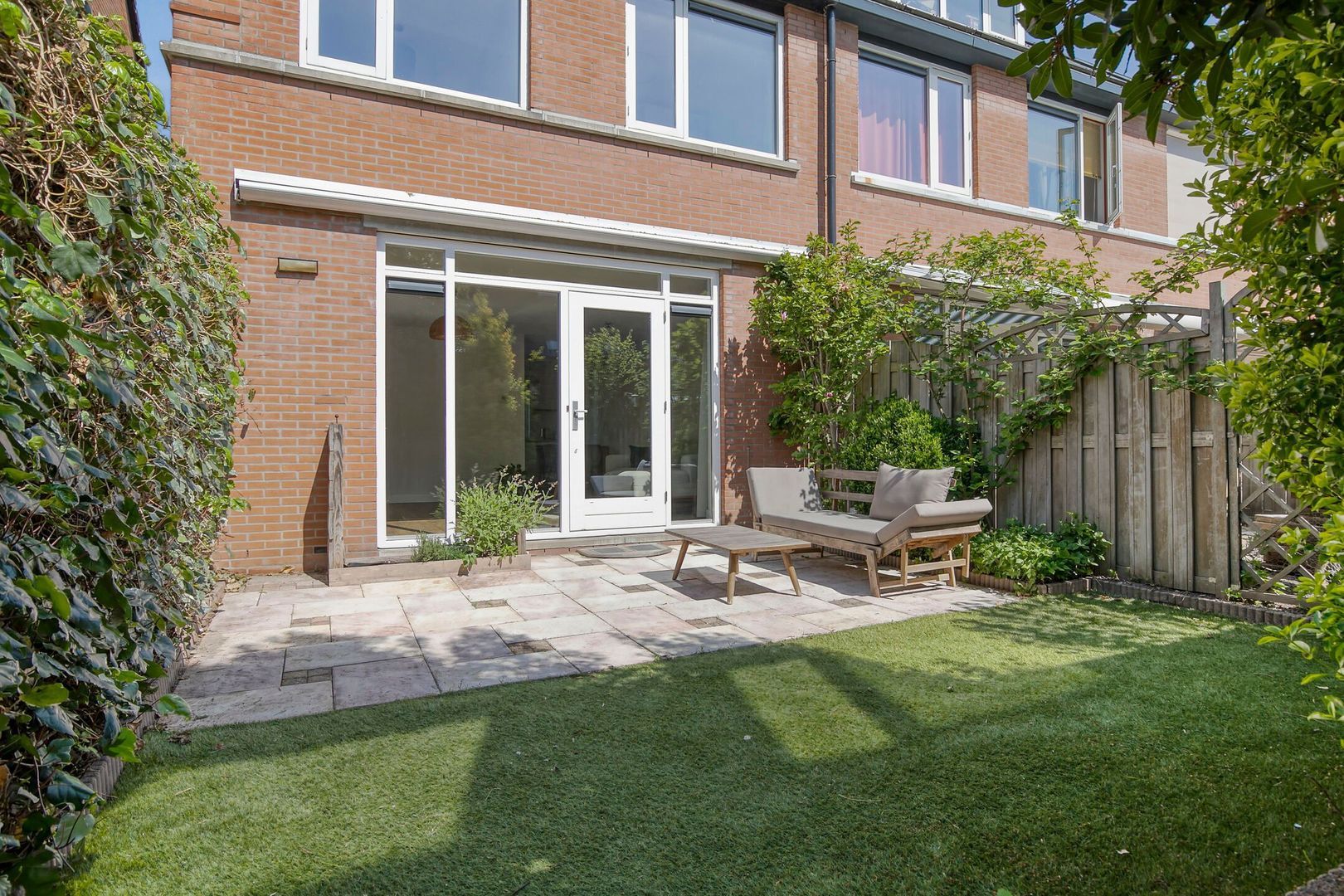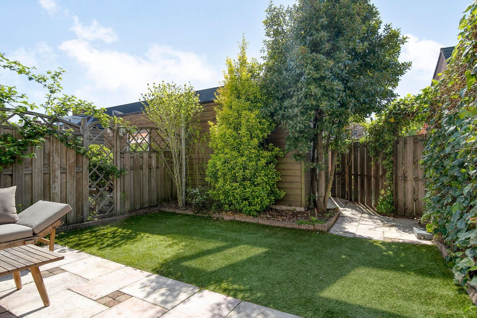 De achtertuin is zowel vanuit de woning als achterom te bereiken. De tuin is onderhoudsvriendelijk en is gelegen op het zuiden met een houten berging en een handmatig zonnescherm.