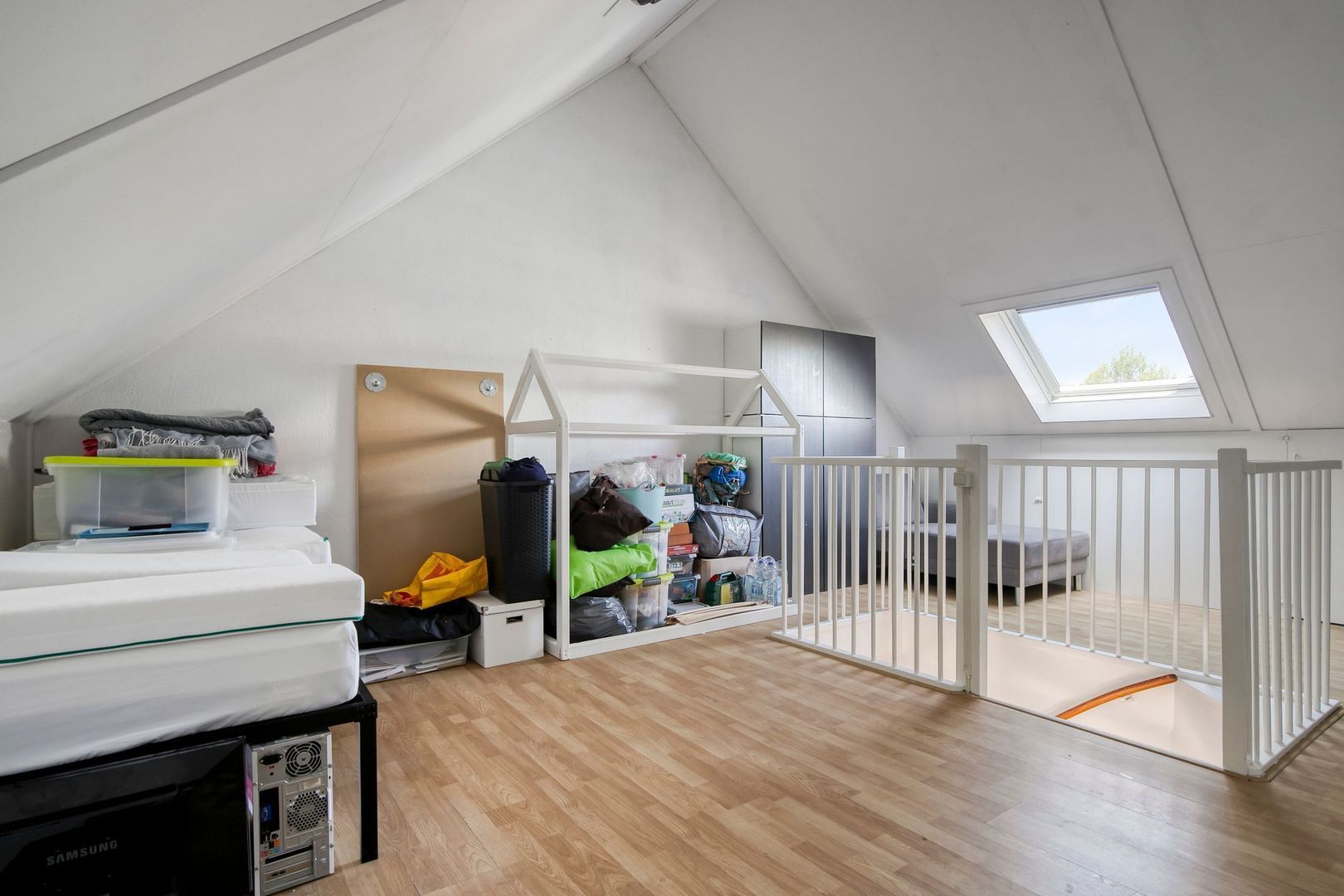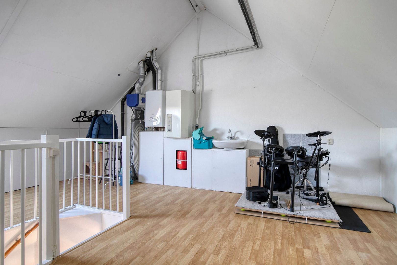 De tweede verdieping is ingericht als open zolderruimte met een opstelaats voor de cv-ketel met zonneboiler, mechanische ventilatie en de aansluitingen voor de wasmachine en droger. De 4e slaapkamer is voorzien van een wastafel en praktische bergruimte achter de knieschotten.