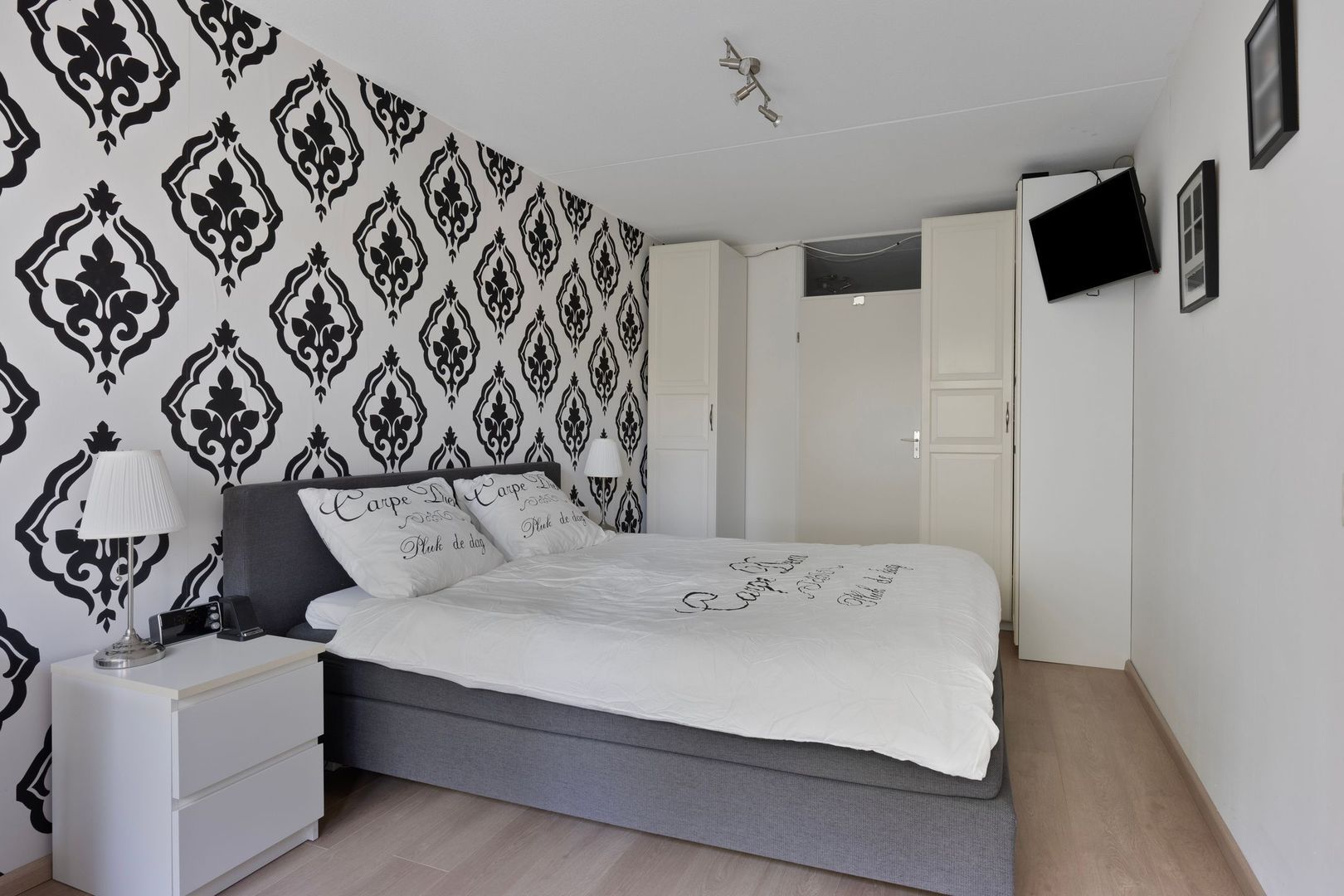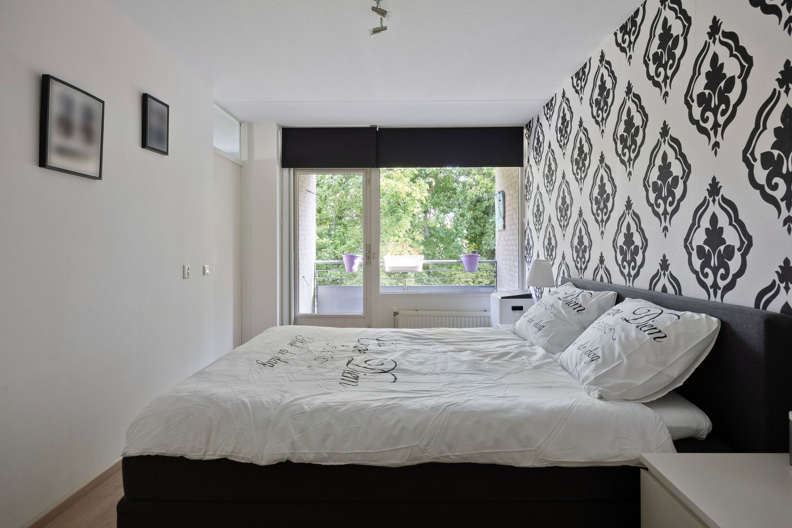 Vanuit de woonkamer is er toegang tot de grote slaapkamer. Deze kamer biedt toegang tot het balkon, met uitzicht over de groenstrook. Hier geniet je van de ochtendzon, een heerlijke plek om de dag te beginnen.