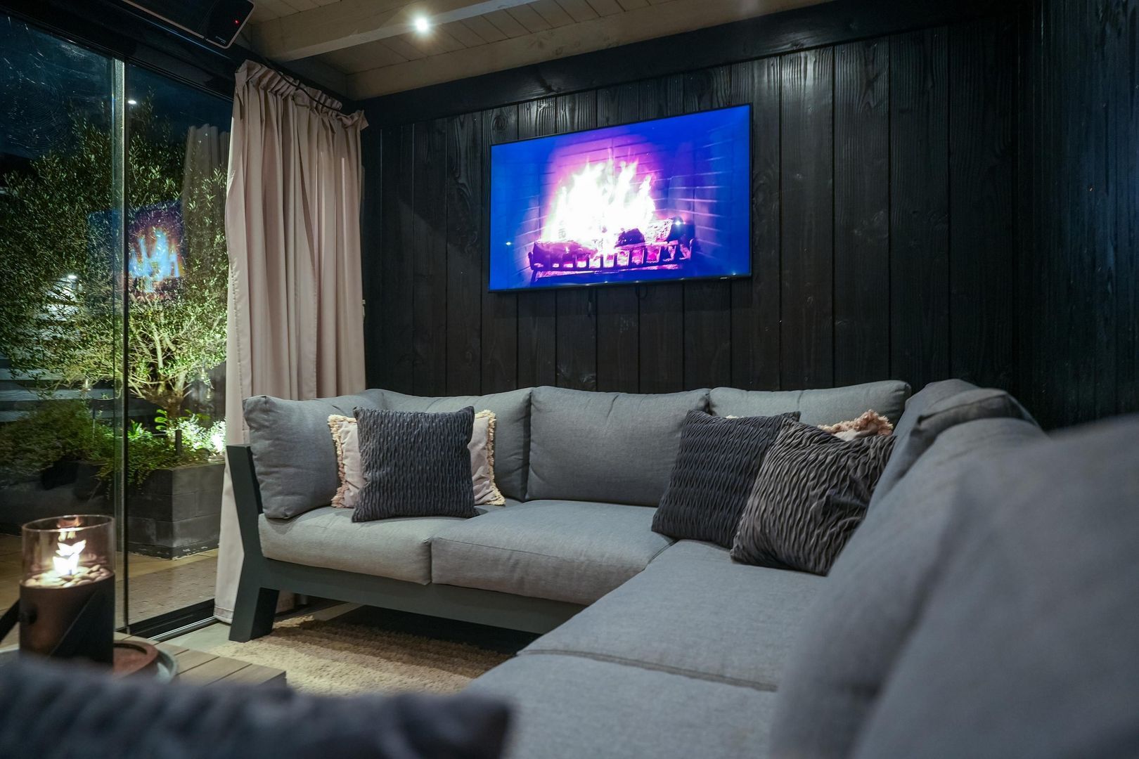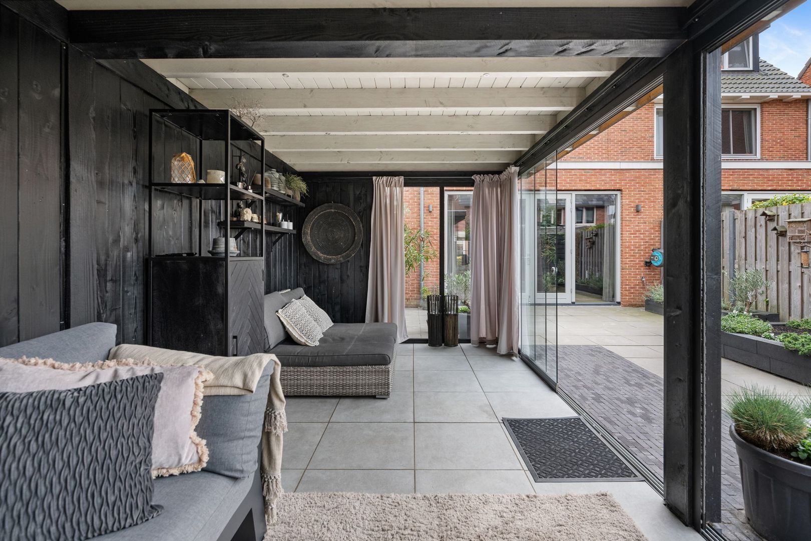 In deze zonnige tuin bevindt zich een sfeervolle overkapping met glazen pui, voorzien van stroom en internet. De ruimte is volledig geïsoleerd en uitgerust met plintverwarming, waardoor deze het hele jaar door comfortabel te gebruiken is. Bovendien zijn er vier zonnepanelen aanwezig, wat bijdraagt aan een energiezuinige en duurzame inrichting.