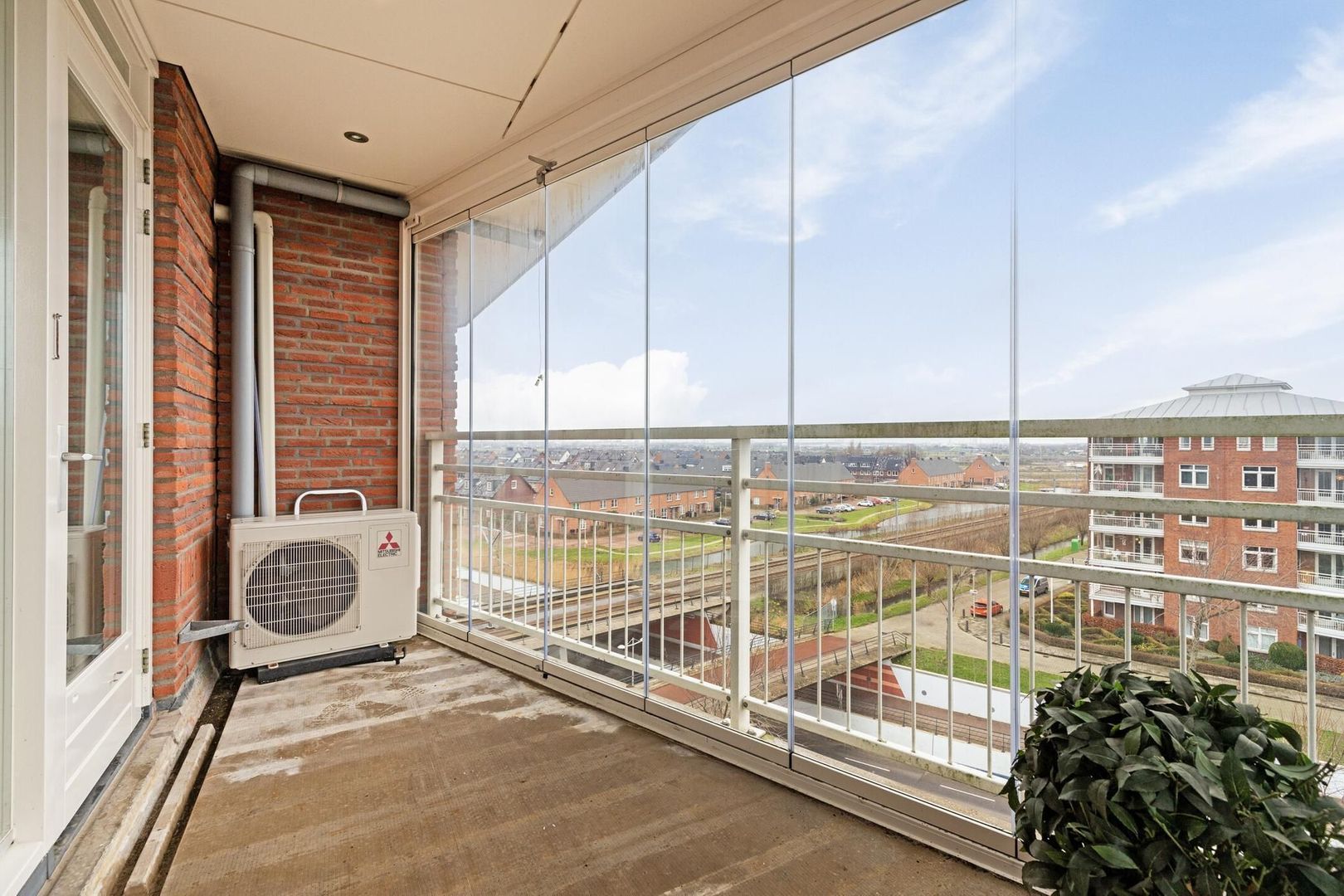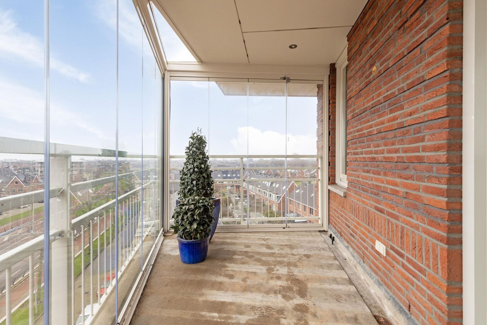 Vanuit de woonkamer is er toegang tot het balkon waar je met mooi weer maar ook als het wat frisser is heerlijk kunt zitten De schuifbare glazen panelen maken het mogelijk het balkon deels of geheel af te sluiten.