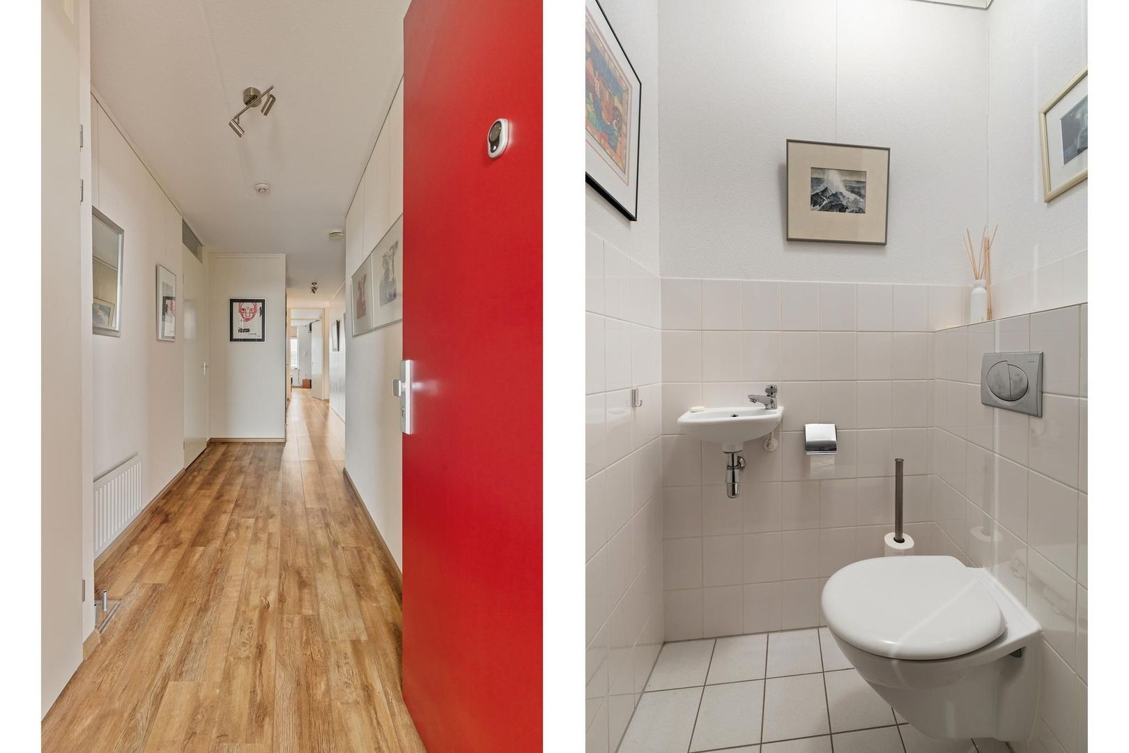 Entree appartement, lange hal met meterkast, separaat toilet en toegang tot alle vertrekken.