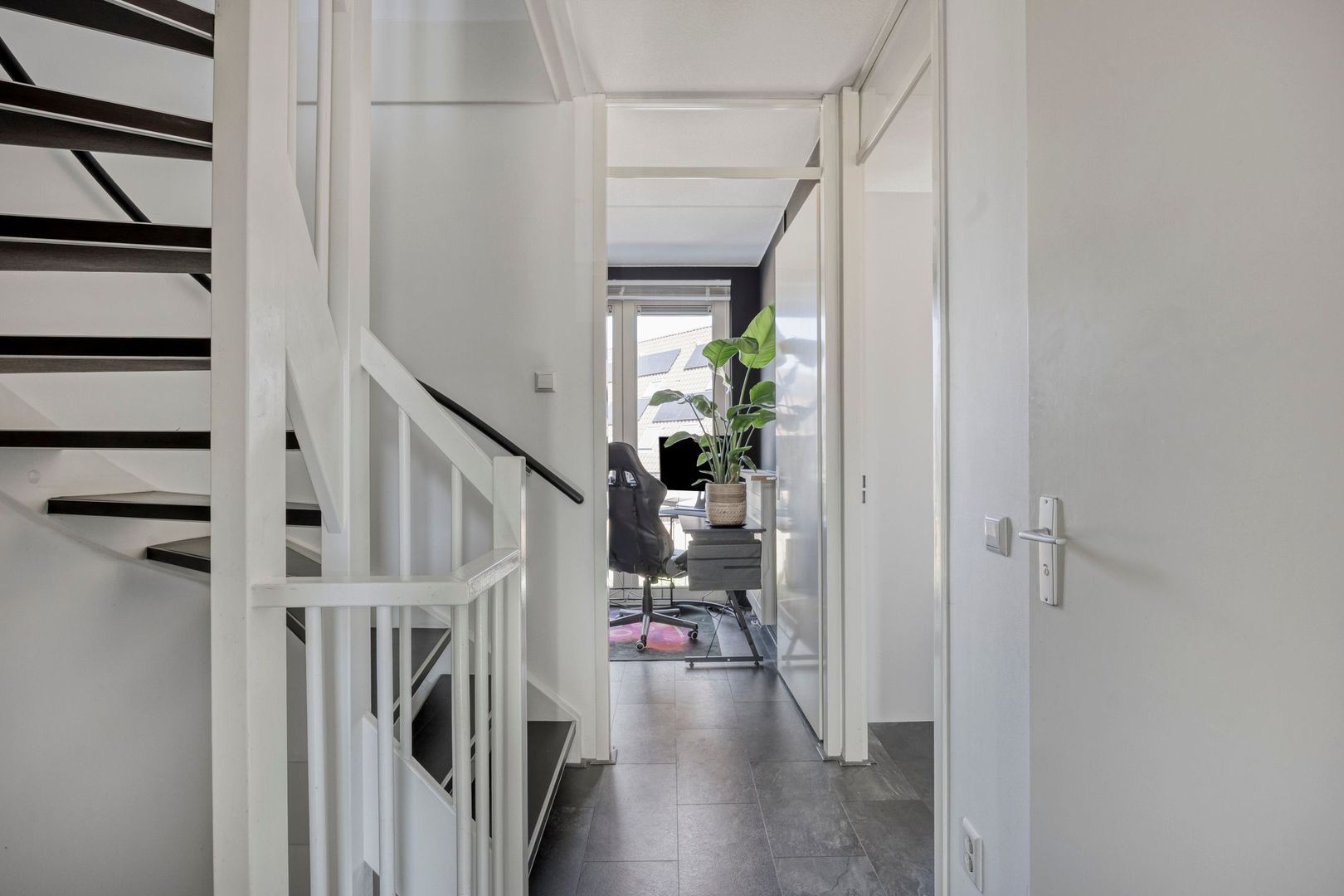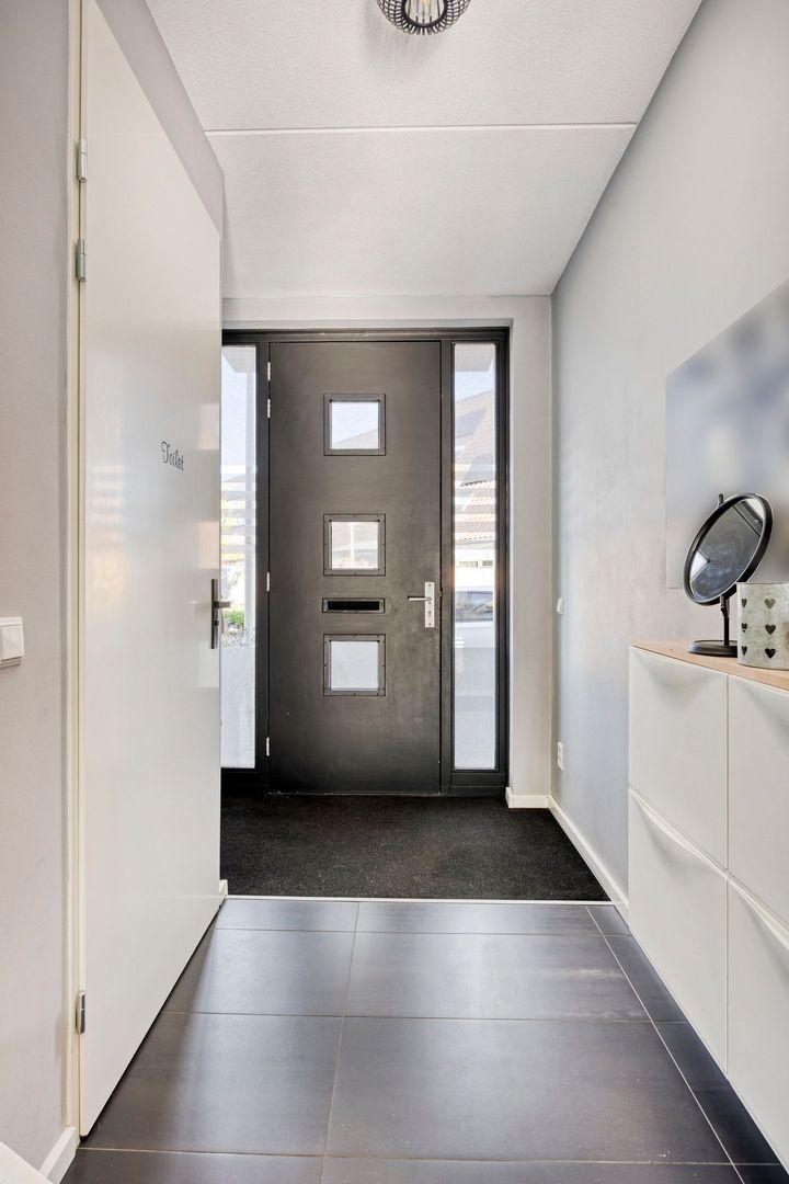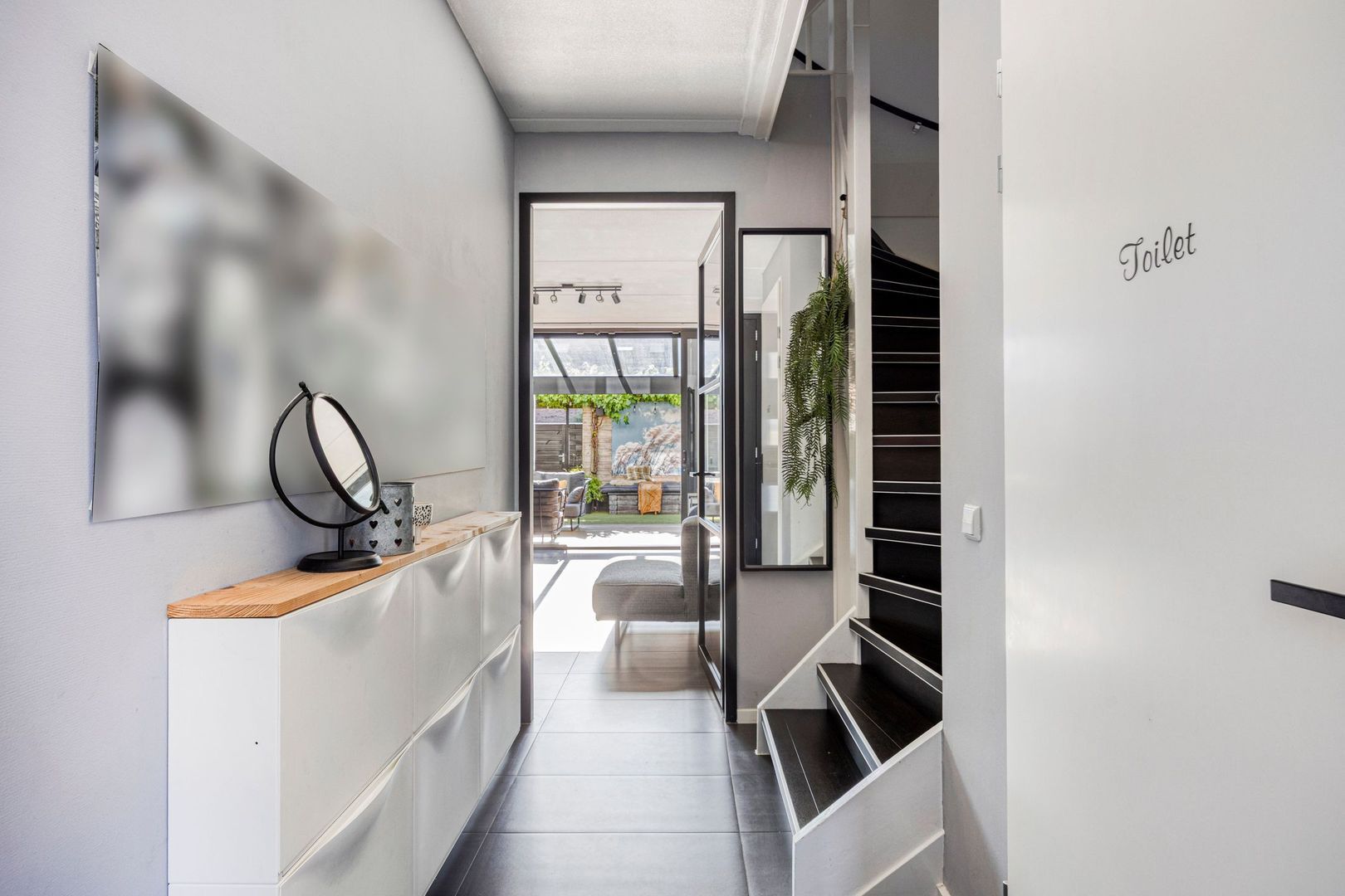 Entree, hal met meterkast, toilet, trapopgang naar de 1e verdieping en toegang tot de woonkamer.
