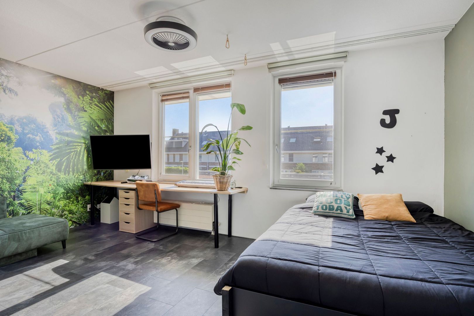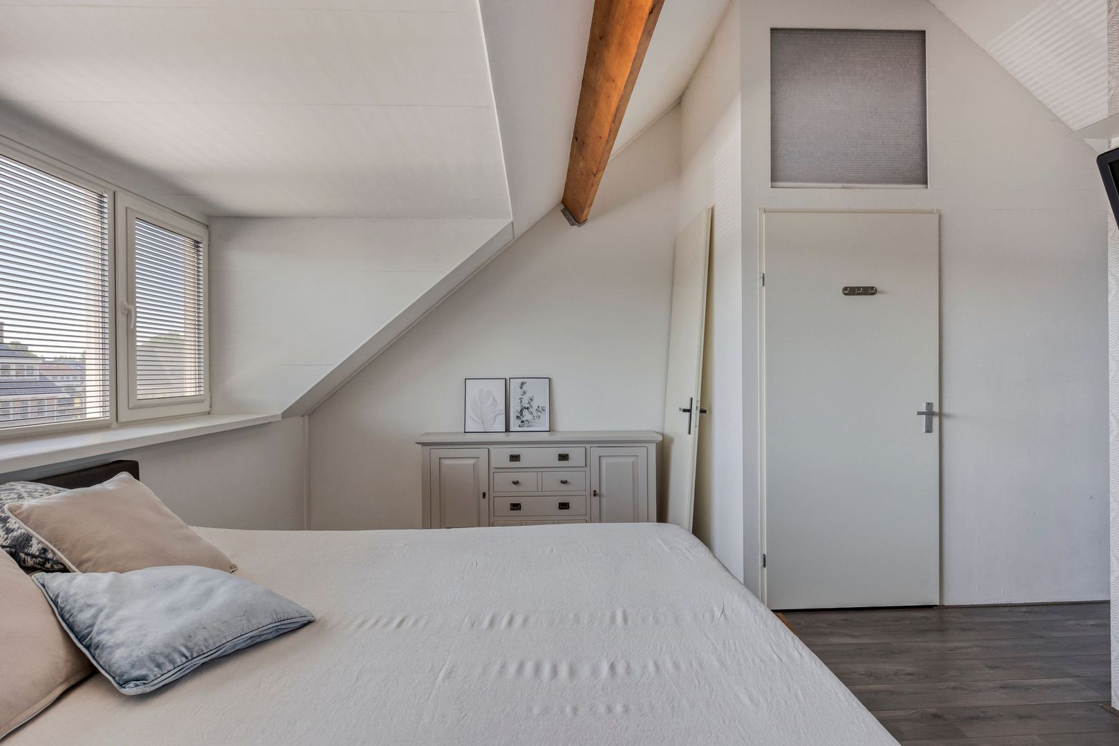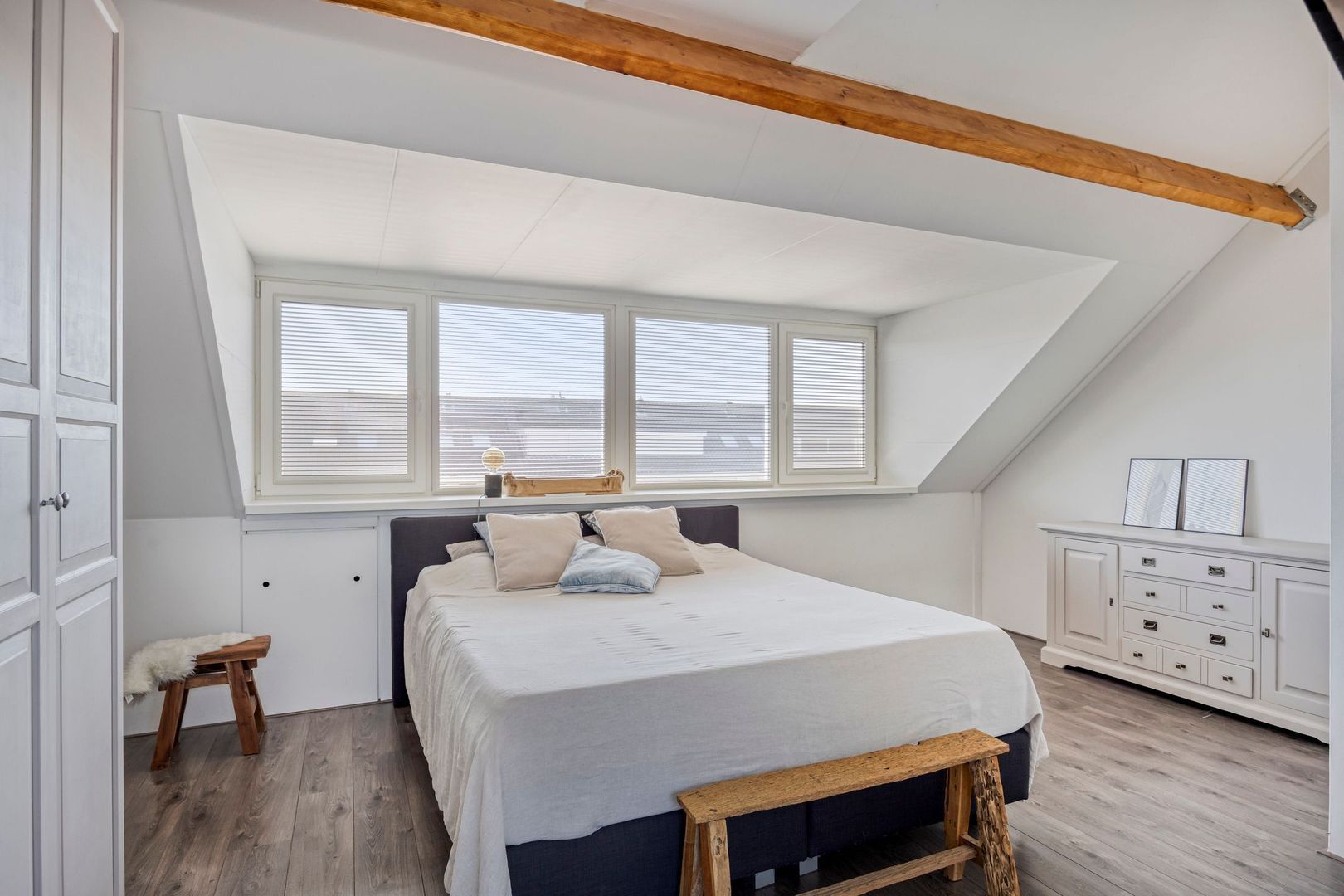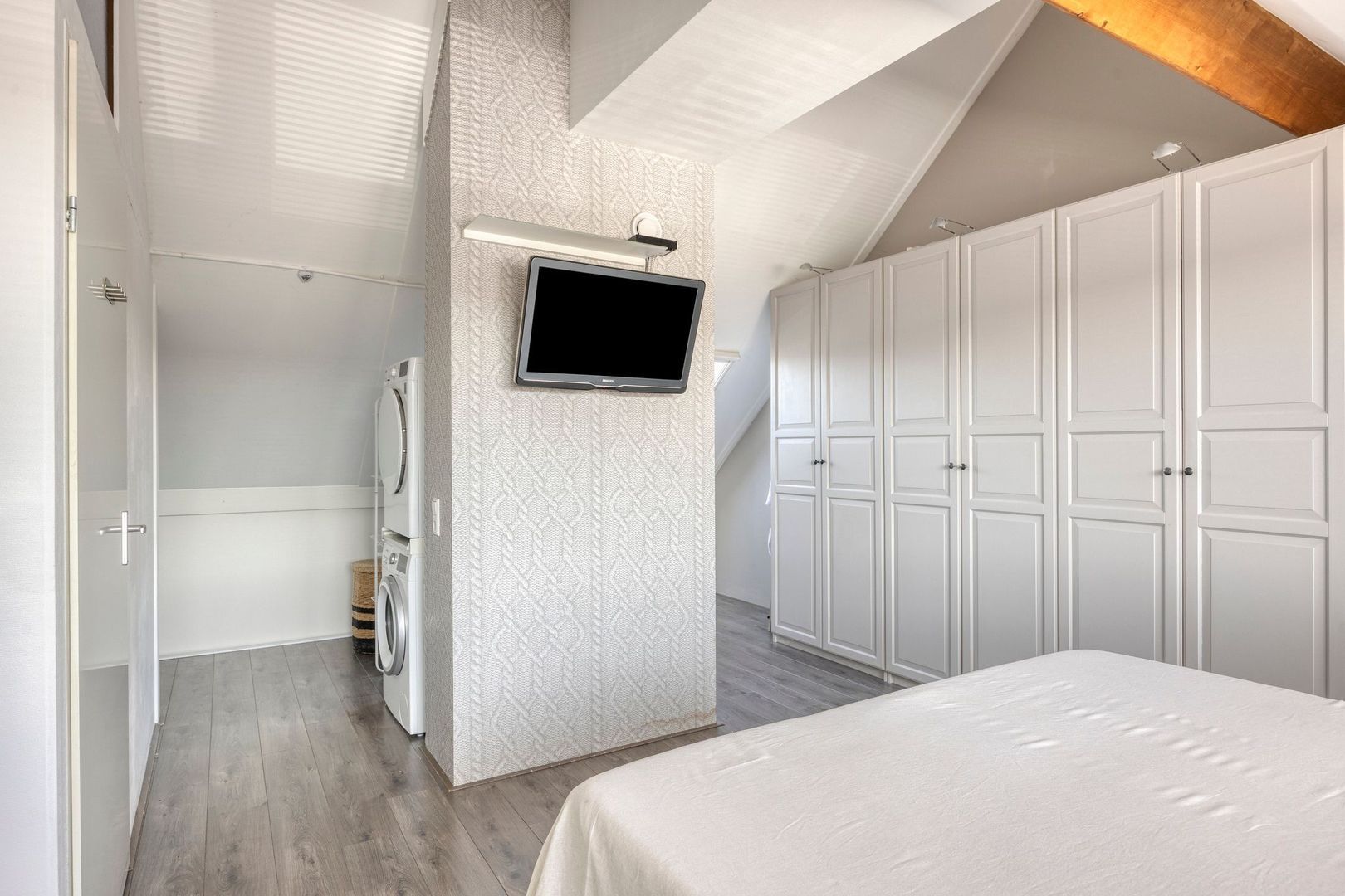 Ruime vierde slaapkamer met kunststof dakkapel, elektrisch rolluik en knieschotten voor extra opbergruimte. Op de overloop bevinden zich de aansluitingen voor de wasmachine en droger, evenals de cv-ketel (netjes weggewerkt in een kast). Ook deze verdieping is voorzien van een laminaatvloer.