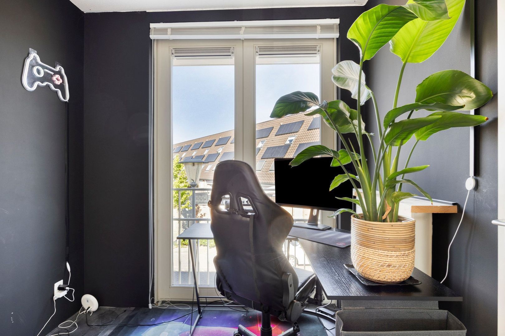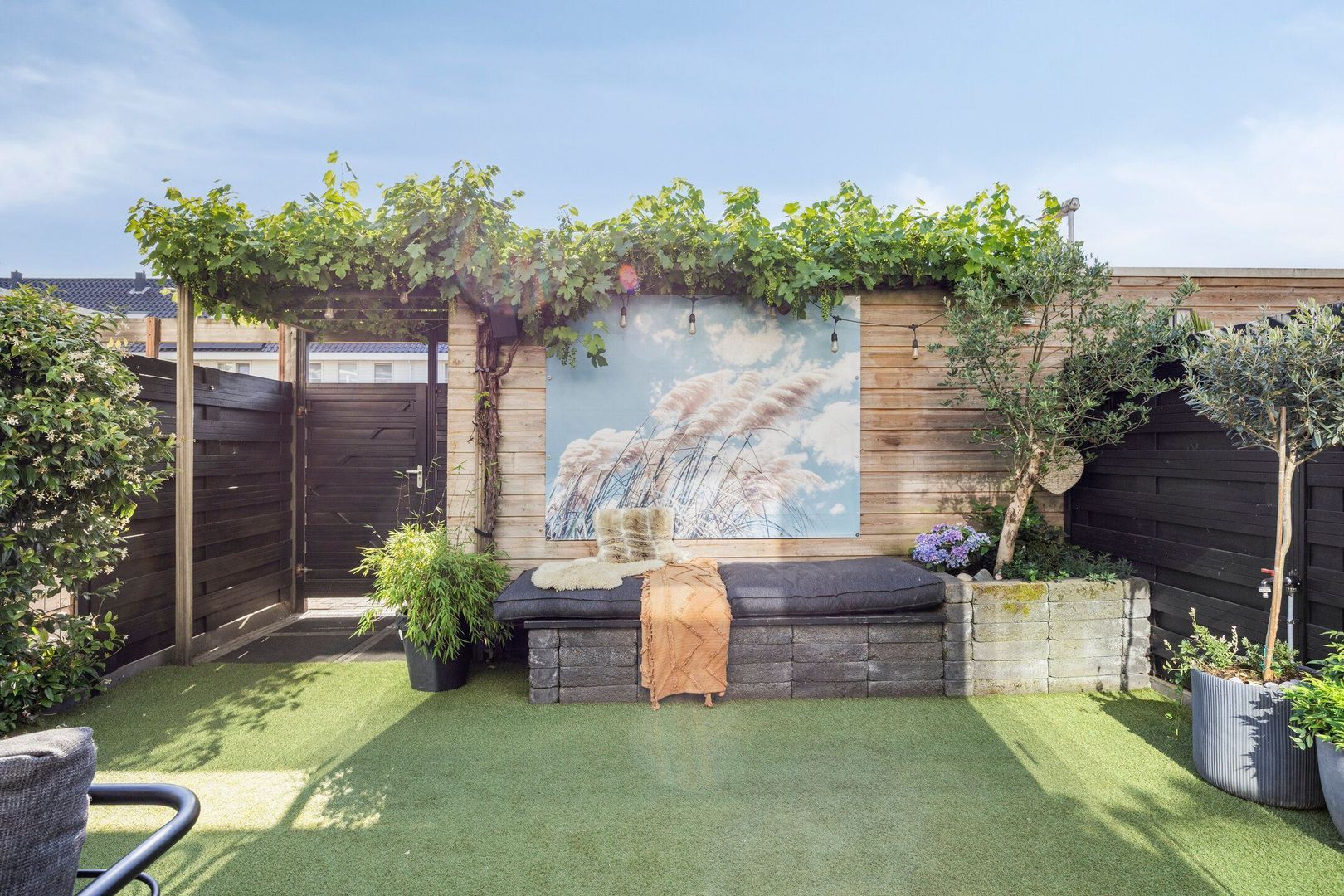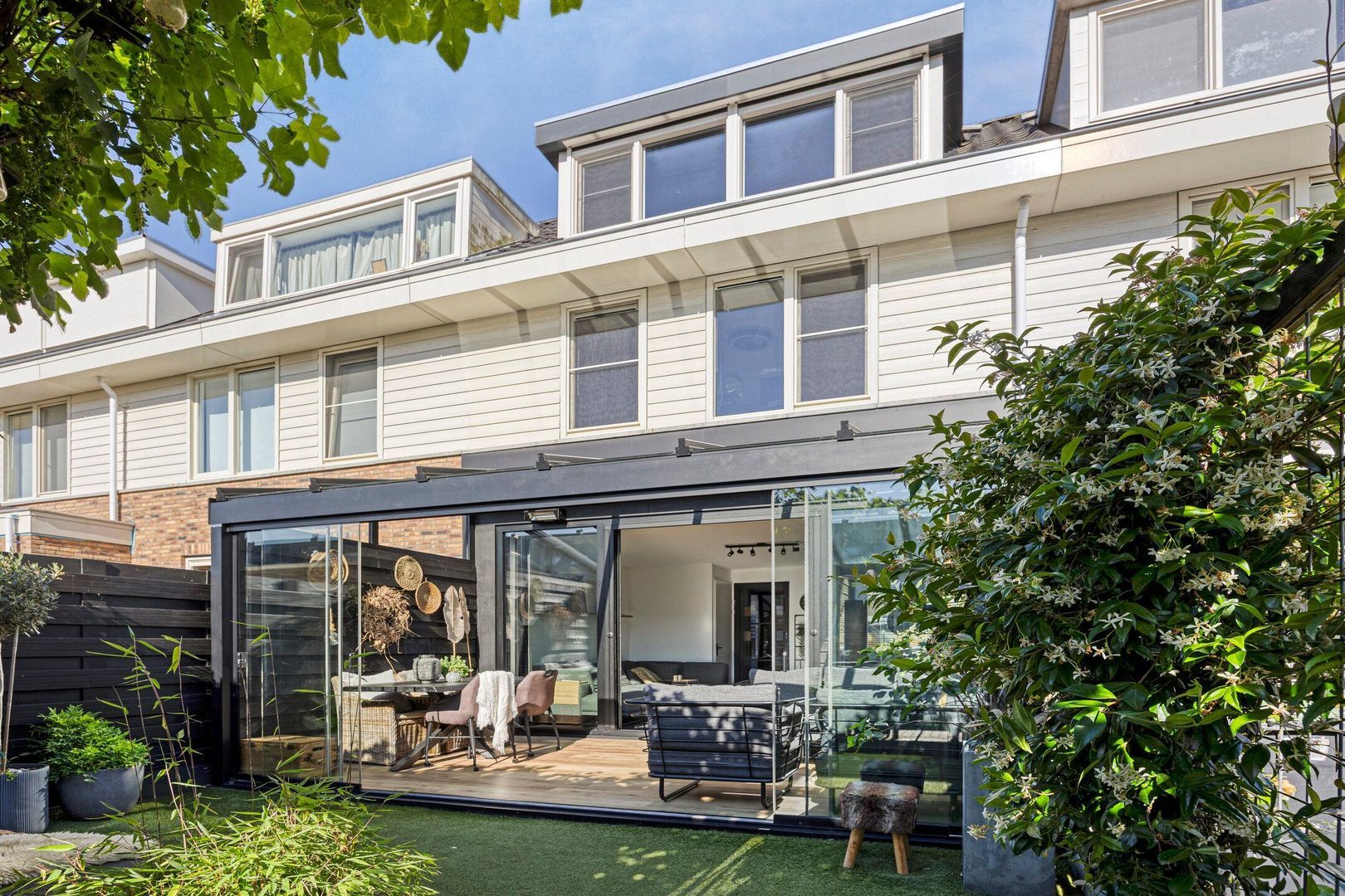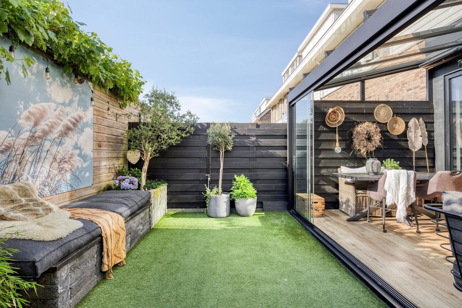 Via de glazen schuifdeur in de serre kom je in de gezellige en onderhoudsvriendelijke achtertuin. Achterin bevindt zich de vrijstaande berging en een achterom die leidt naar het afgesloten parkeerterrein. Hier heb je een eigen privéparkeerplaats.