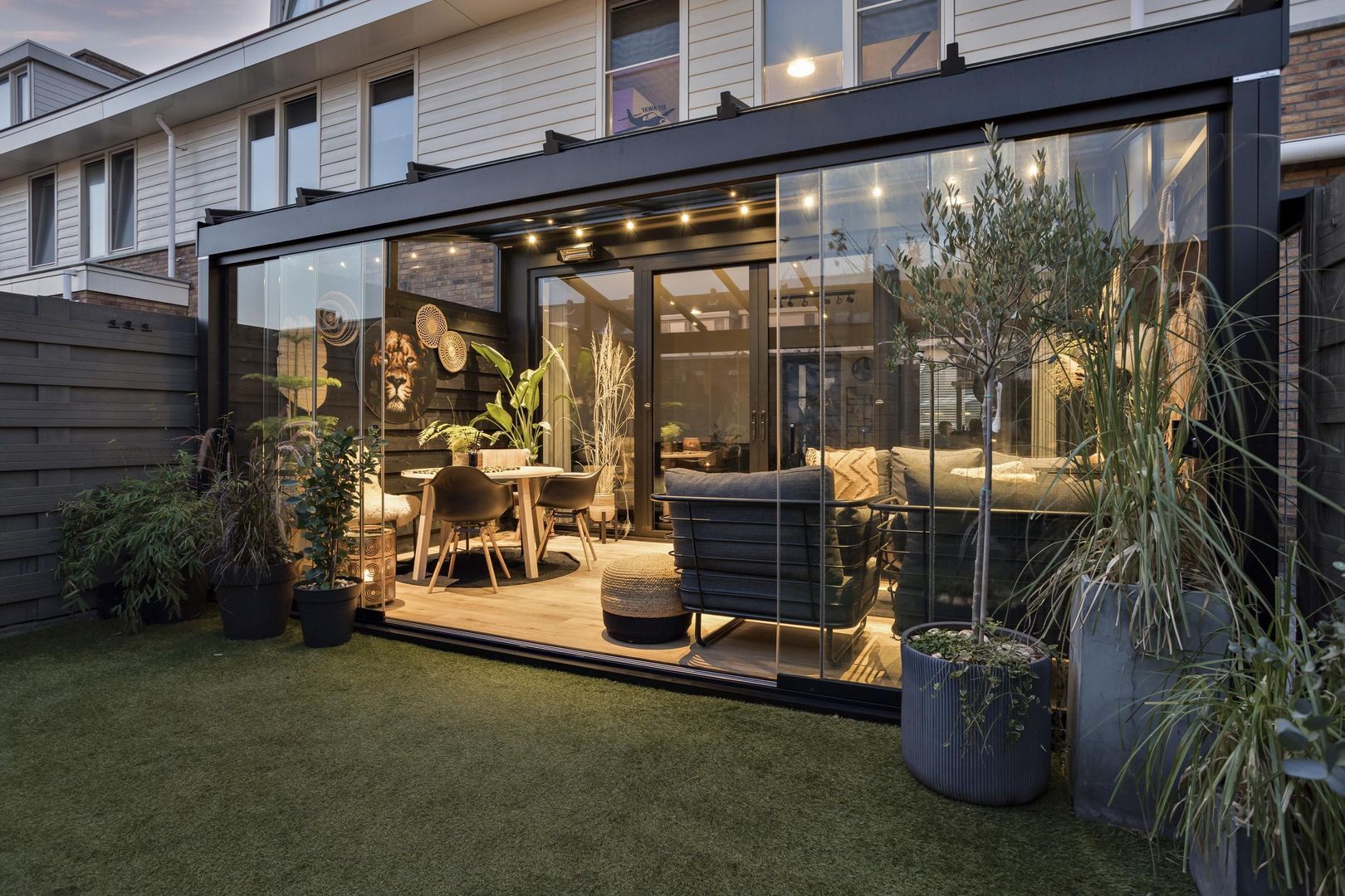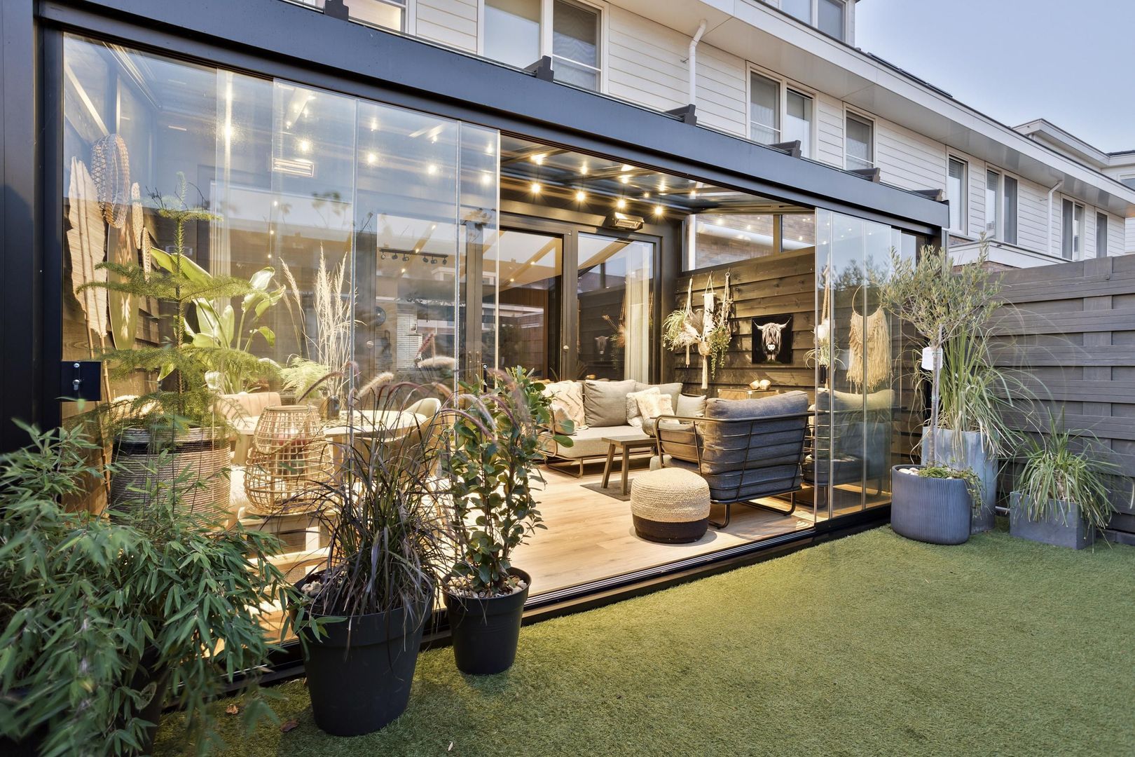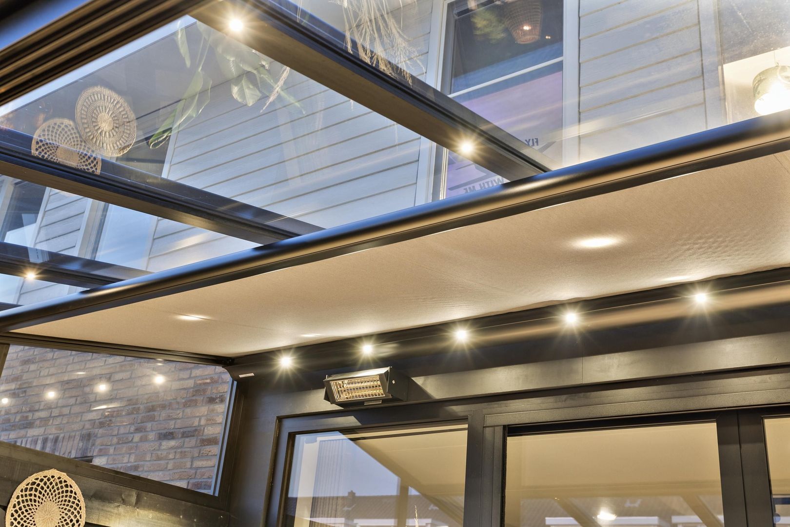 + Luxe serre met twee heaters, verlichting, zonnescherm én glazen schuifdeuren;
