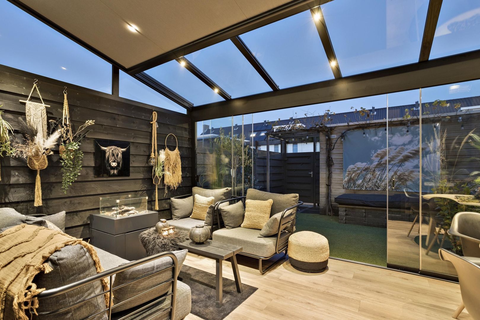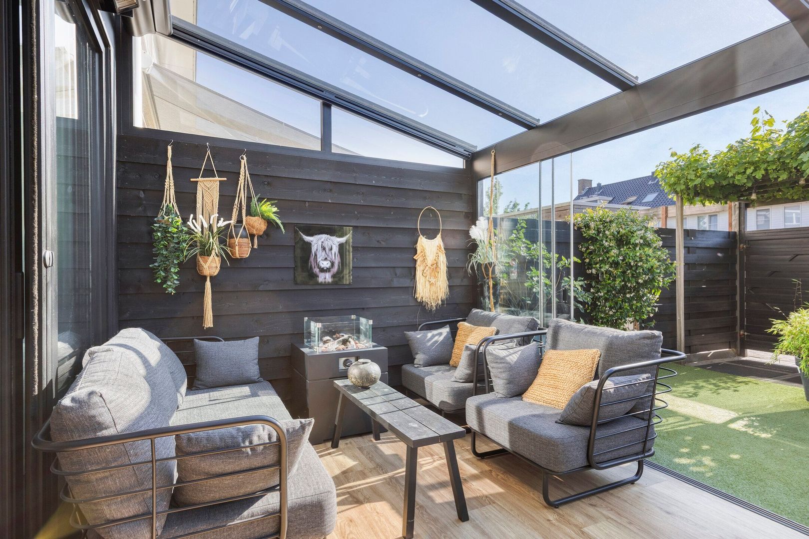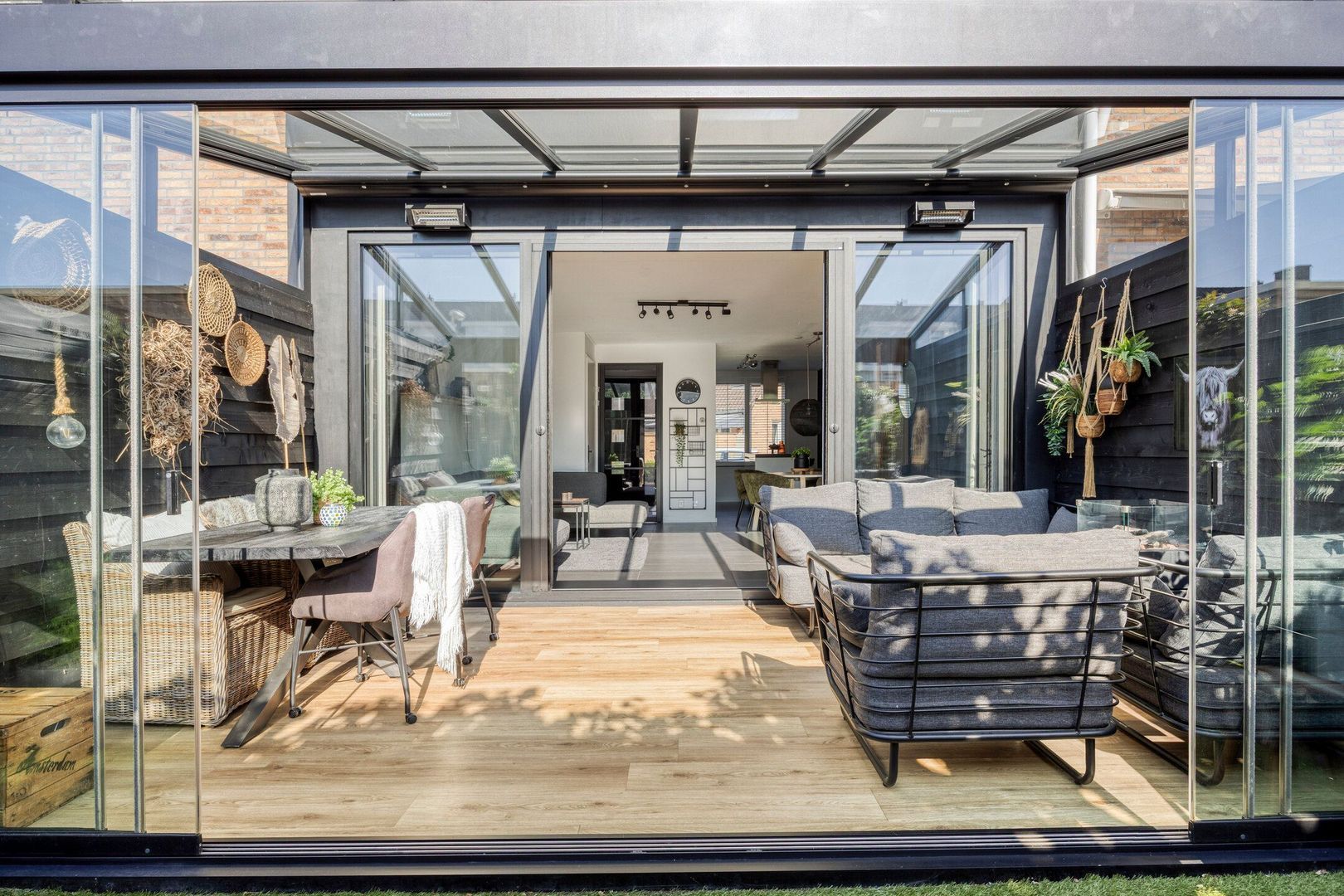 + Luxe serre met twee heaters, verlichting, zonnescherm én glazen schuifdeuren;
