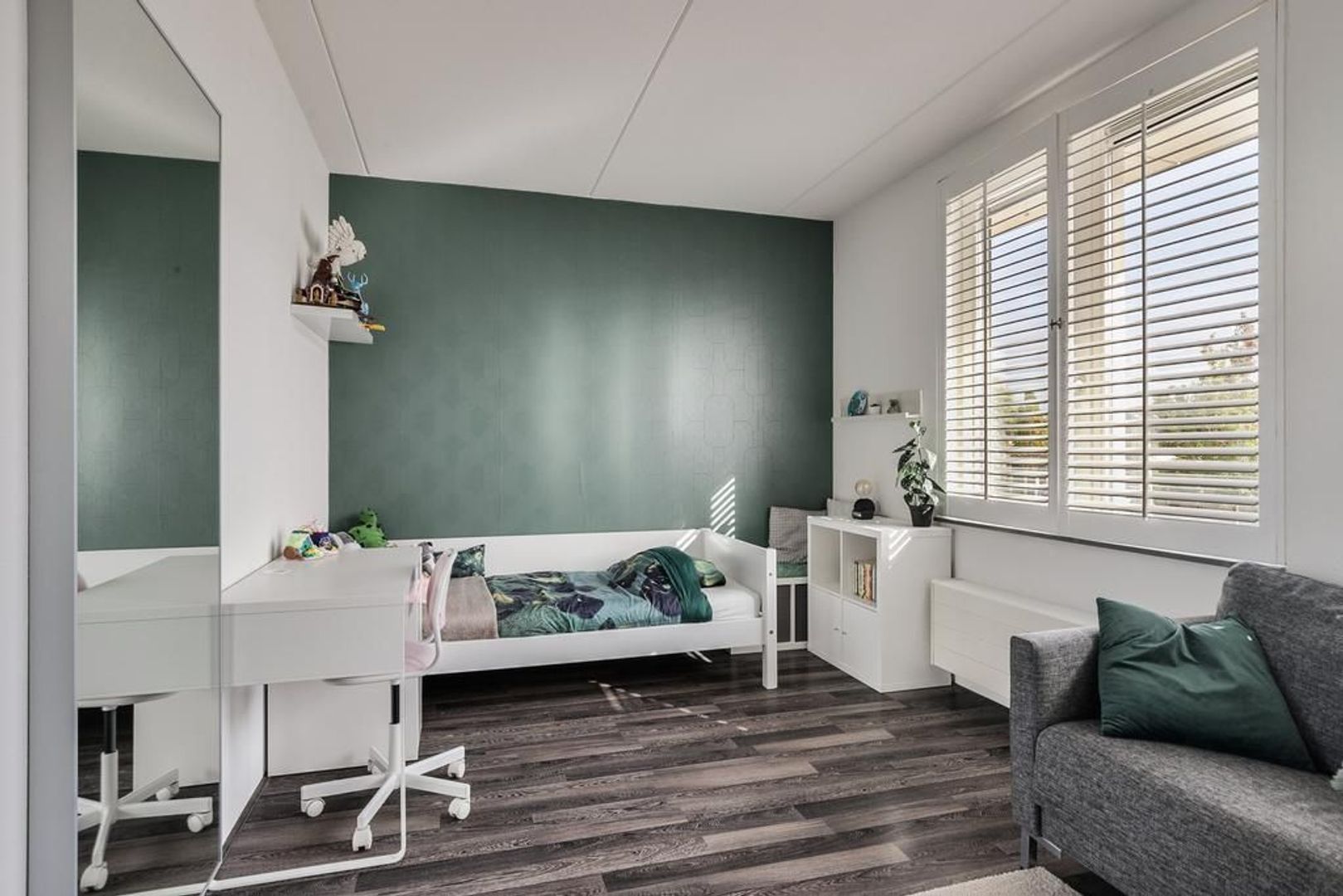 Slaapkamer 3, aan de achterzijde, voorzien van Jasno shutters.